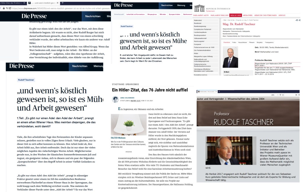 Rudolf Taschner sitzt seit dem Jahr 2017 im österreichischen Parlament … Das, was ihm Burger flüsterte, schrieb er in einer Tageszeitung, die gelesen wird von der sogenannten Staatsspitze bis hinunter zu den wohl bedeutendsten …