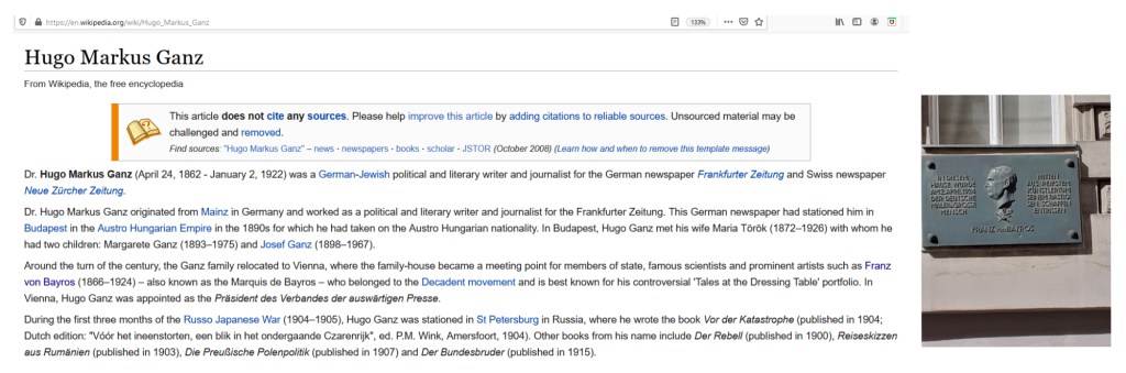 Zu Hugo Markus Ganz gibt es keinen Eintrag, genauer, zu ihm gibt es in der deutschsprachigen Version von „Wikipedia“ keinen Eintrag, aus der englischsprachigen Ausgabe von „Wikipedia“ ist u.a. zu erfahren:
