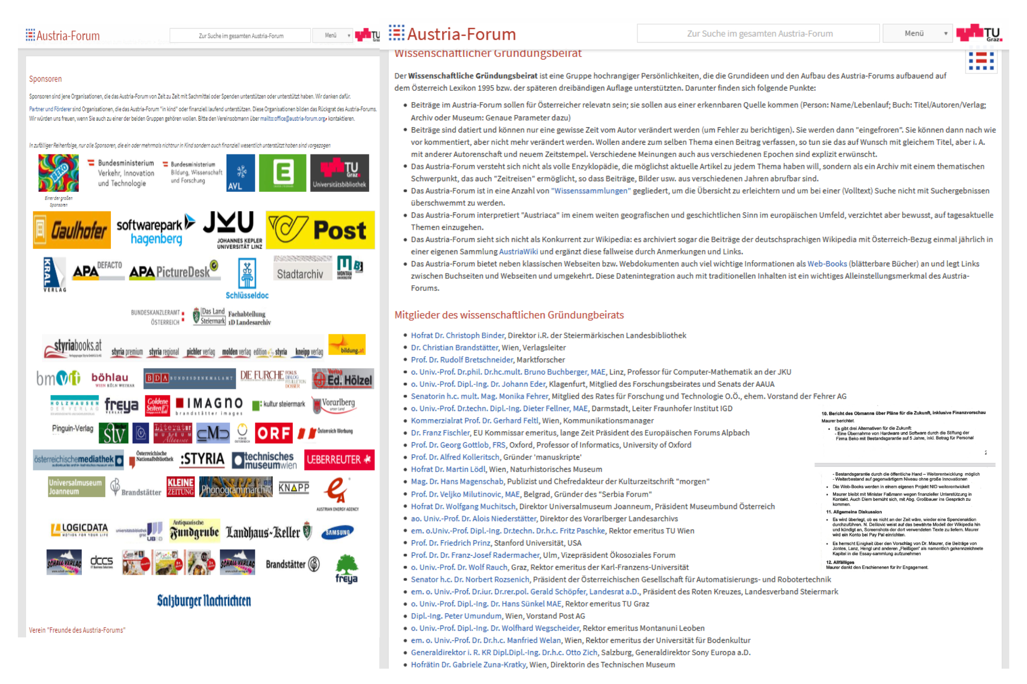 „Austria-Forum, das Wissensnetz aus Österreich sieht sich“, nach eigenem ungefragten Bekunden, „nicht als Konkurrent zur Wikipedia: es archiviert sogar die Beiträge der deutschsprachigen Wikipedia mit Österreich-Bezug.“