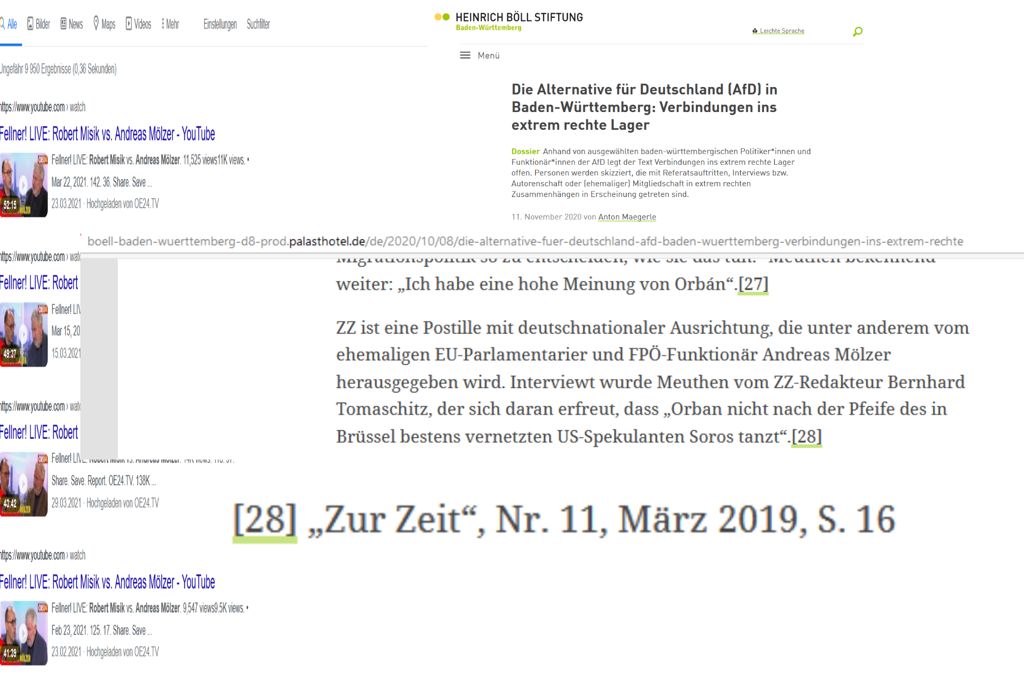 Der Artikel auf der Website der Heinrich-Böll-Stiftung ist nicht, wie es gerne formuliert wird, aus grauer Vorzeit, sondern vom 11. November 2020, in dem Andreas Mölzer mit seinem Magazin vorkommt, und auch Lisbeth Grilitsch …