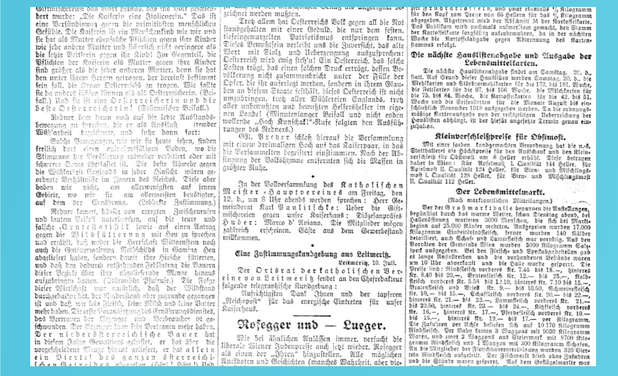 Der Inhalt dieser Rede ist bekannt, am 11. Juli 1918 berichtet die „Reichspost“ ausführlich über die christlichsoziale Veranstaltung in der Volkshalle des Neuen Rathauses.