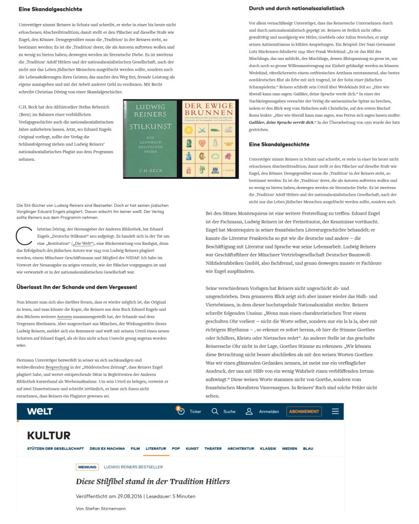 Ludwig Reiners, ein NSDAP-Mitglied mit vornehm vorgebrachten Antisemitismus, das ist von ihm, Schirnding, und vom Verlag, Beck, in diesem Buch nicht zu erfahren. Raffiniert? Vielleicht.