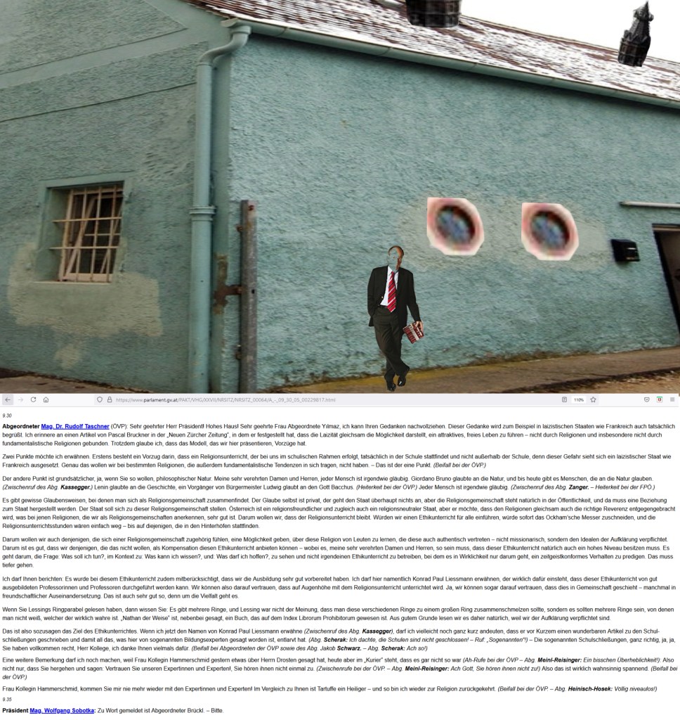 Konziliant gab sich Abgeordneter Rudolf Taschner (ÖVP) in Richtung SPÖ, deren Gedanken er nachvollziehen könne. Taschner verwies auf „laizistische Staaten wie Frankreich“, lobte aber die Vorzüge des österreichischen Modells. Diese lägen darin, dass „Religionsunterricht in der Schule und nicht außerhalb“ stattfinde. Das wolle man „bei bestimmten Religionen nicht haben“. Außerdem sei jeder Mensch „irgendwie gläubig“, referierte Taschner. So habe Giordano Bruno an die Natur, Lenin an die Geschichte und ein Vorgänger des Bürgermeisters Ludwig an Bacchus geglaubt. Taschner bekräftigte, dass der Glaube selbst privat sei, die Religionsgemeinschaften aber in der Öffentlichkeit stünden und daher eine Beziehung zum Staat hergestellt werden müsse. Religions- und Ethikunterricht müssten den Idealen der Aufklärung verpflichtet sein, ohne missionarisch zu sein oder nur ein zeitgeistkonformes Verhalten zu predigen. Abgeordnete Gertraud Salzmann (ÖVP) verwies auf ihre langjährigen Erfahrungen mit dem Schulversuch zum Ethikunterricht in ihrem Heimatbundesland Salzburg. Obwohl seit 2011 „die Fakten auf dem Tisch“ lägen, sei bis jetzt nichts geschehen. Gemeinsam mit den Grünen setze man nun den Ethikunterricht ab Herbst 2020/21 um. Salzmann schloss eine spätere Erfassung der Sekundarstufe 1 nicht aus, es gebe bisher aber nur Erfahrungen mit der Oberstufe. Schon jetzt gebe es im Schulversuch viele gemeinsame Projekte zwischen Ethik- und Religionsunterricht. Da auch im konfessionellen Religionsunterricht viel an Menschen- und Persönlichkeitsbildung gemacht werde, sei Ethik für alle bereits vorhanden, argumentierte Salzmann. Der Religionsunterricht dürfe nicht an den Rand gedrängt werden, nur so werde der „Einfluss von Hinterhofpredigern“ zu verhindern.
