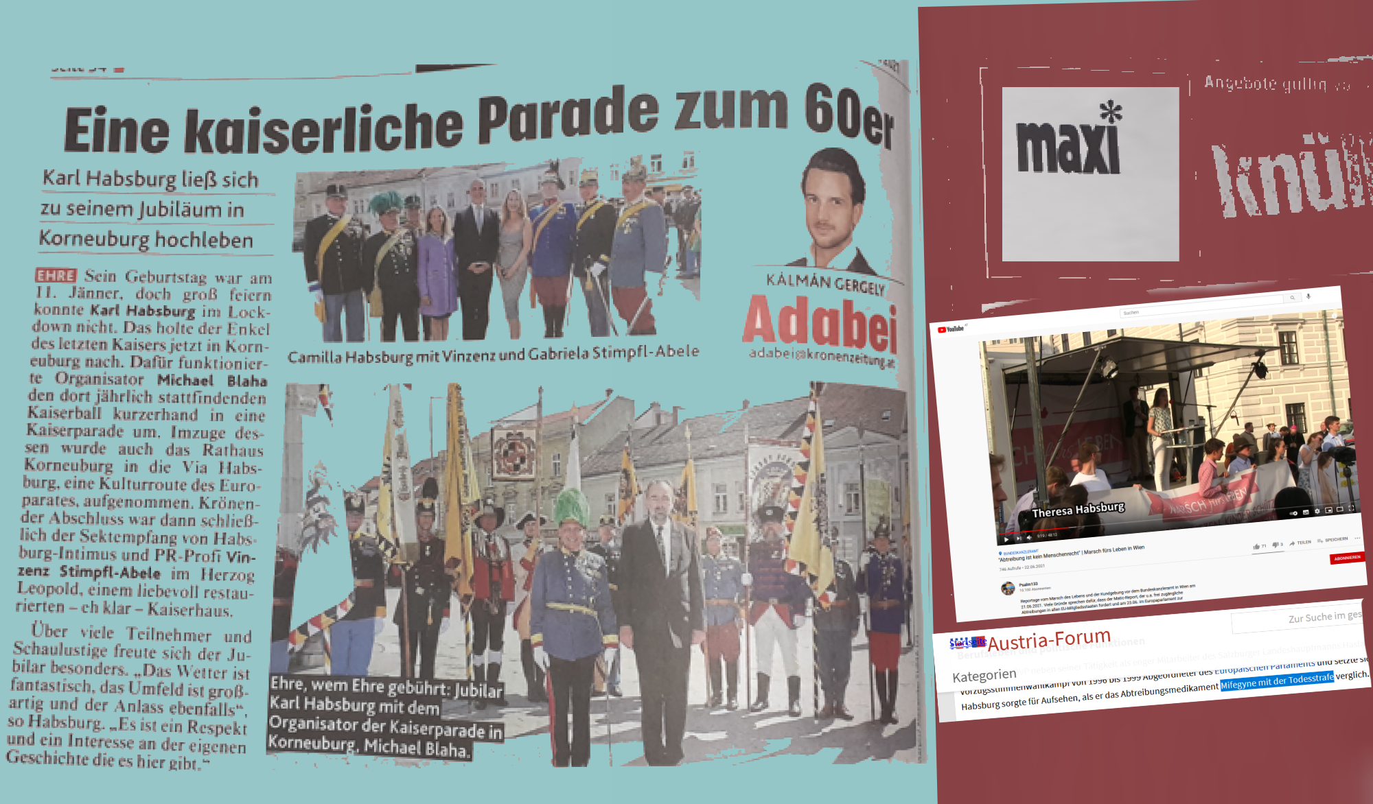 Am verwichenen Sonntag, 27. Juni ’21, hat eine österreichische Tageszeitung Karl Habsburg wieder einmal die Krone aufgesetzt: „Ehre wem Ehre gebührt“. Einer besonders wird „Eine kaiserliche Parade zum 60er“ wohl mit Tränen gelesen haben, als wäre seine Wirklichkeit Wirklichkeit …