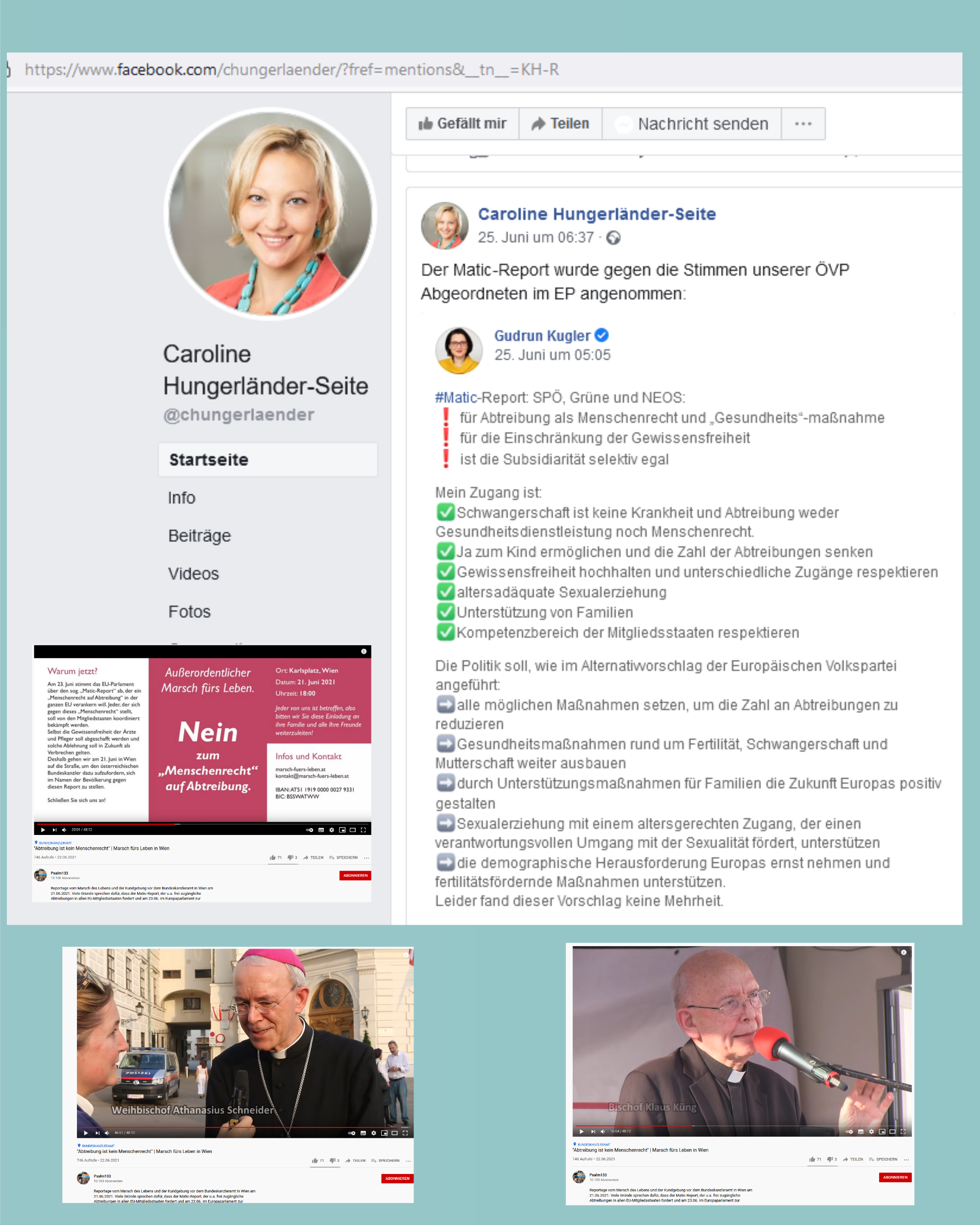 Caroline Hungerländer-Seite, Gemeinderätin der türkis getupften christschwarzen Partei in Wien, verkündet dies am 25. Juni ’21 auf der Plattform des Unternehmens mit Stolz, und sie meint dabei, wenn sie ihre Parteikameradin Gudrun Kugler, Abgeordnete der türkis getupften christschwarzen Partei im österreichischen Parlament, zitiert, hätte sie Argumente gegen den „Matić-Bericht“ …