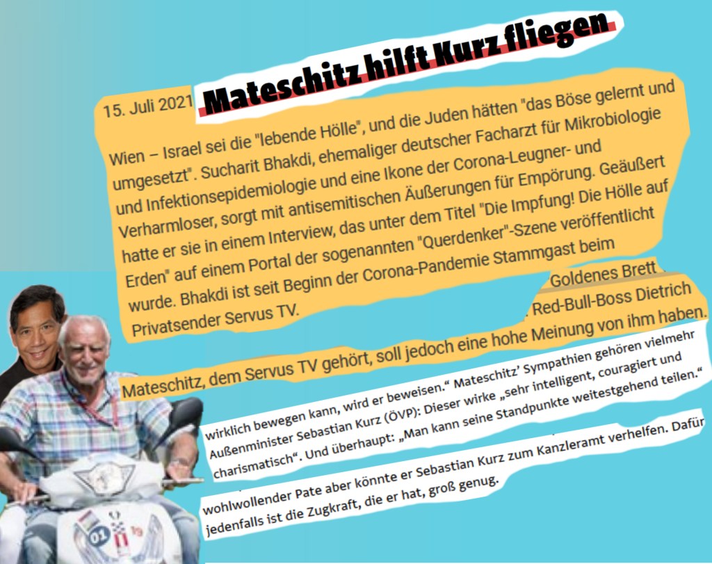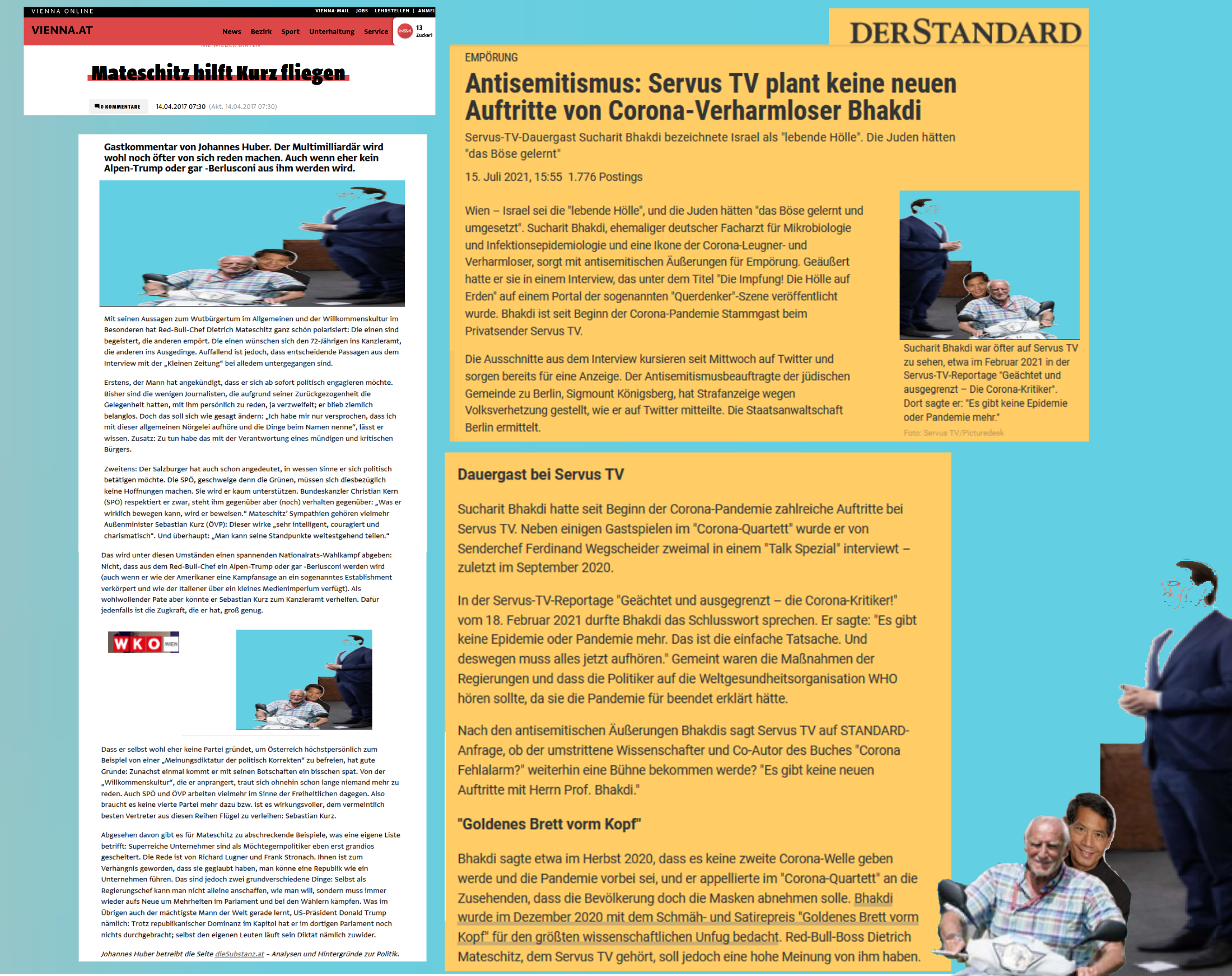 Von Sucharit Bhakdi soll Dietrich Mateschitz ebenfalls eine „hohe Meinung“ haben, wie berichtet wird. Leider wurde hierfür kein praktisches Beispiel gefunden, wie sich die „hohe Meinung“ zu Sucharit Bhakdi von Dietrich Mateschitz ausdrückt. So muß als praktisches Beispiel als Antwort auf die Frage, wie wird eine „hohe Meinung“ ausgedrückt, seine „hohe Meinung“ zu Sebastian Kurz herhalten.