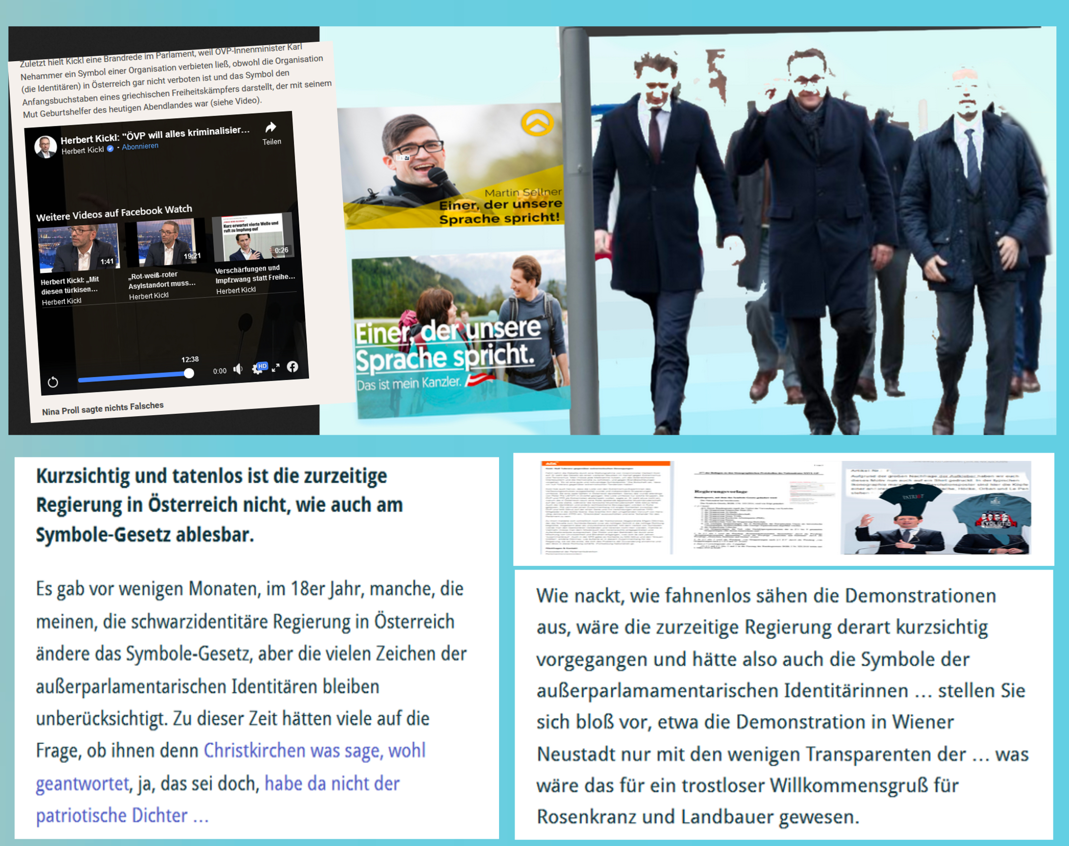 Diesen Kommentar über das recht Gesagte, wenn Grundrecht gesinnungsgemäß als Bodenrecht übersetzt, von Nina Proll, vermengt die gesinnungsgemäß zensurierte Website mit einer Lobadresse an Herbert Kickl wegen seines Organisierens einer Kundgebung und seiner Verteidigung des Symbols der „Organisation (die Identitären) in Österreich“…