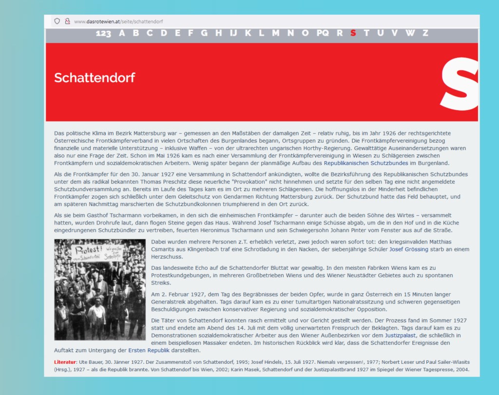 Mit einem Ort sind die „Frontkämpfer“ unvergeßlich verknüpft, mit Schattendorf. Mit ihren Schüssen und all den Folgen für die erste österreichische Republik …