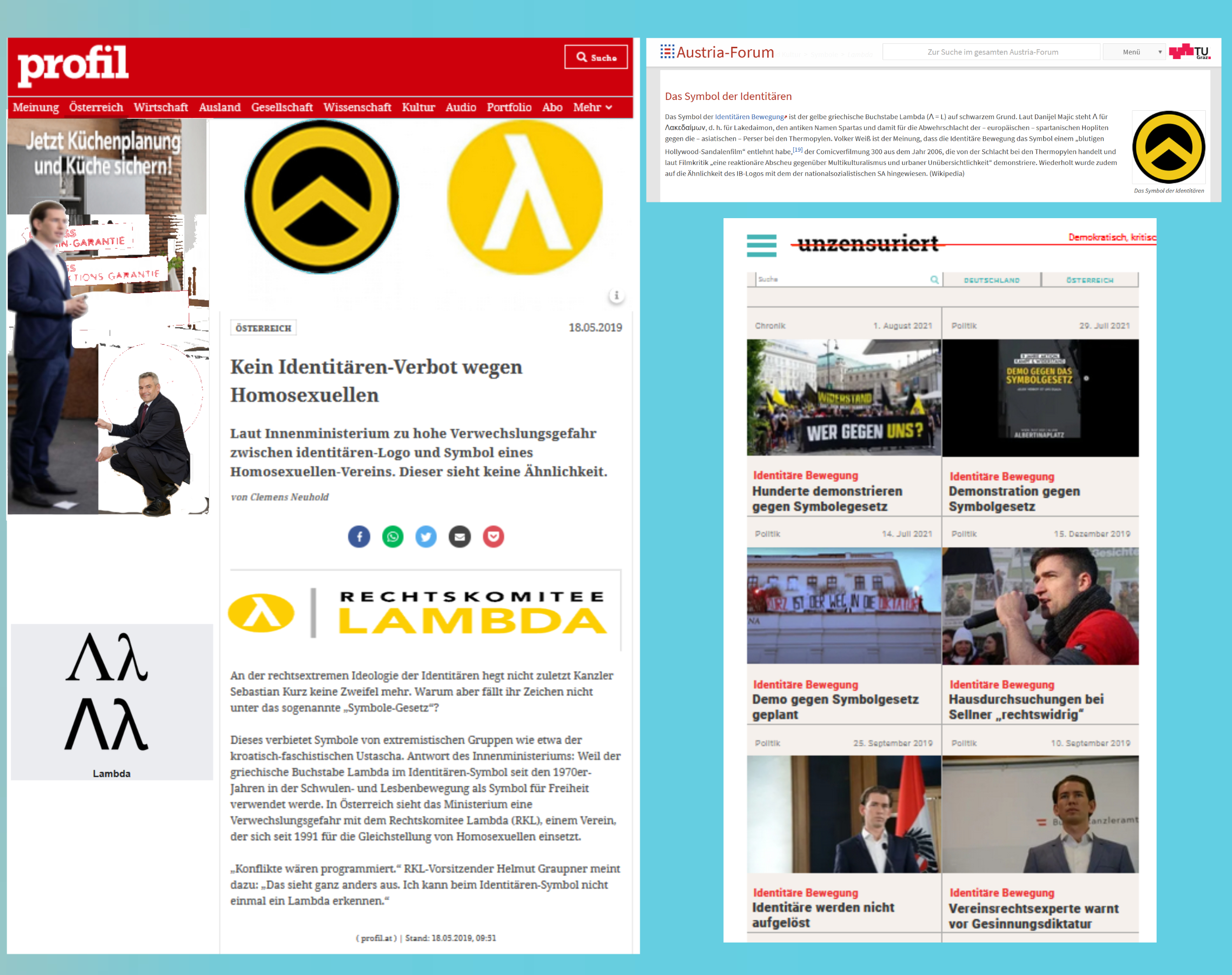 Die patriotisch bewegten Männer und Frauen, die meinen, eine Bewegung zu sein, kündigen an, am 31. Juli ’21 ein neues Symbol zu präsentieren, auf ihrer Website, da ihr bisheriges Lambda-Symbol gesetzlich verboten wurde, in Österreich.