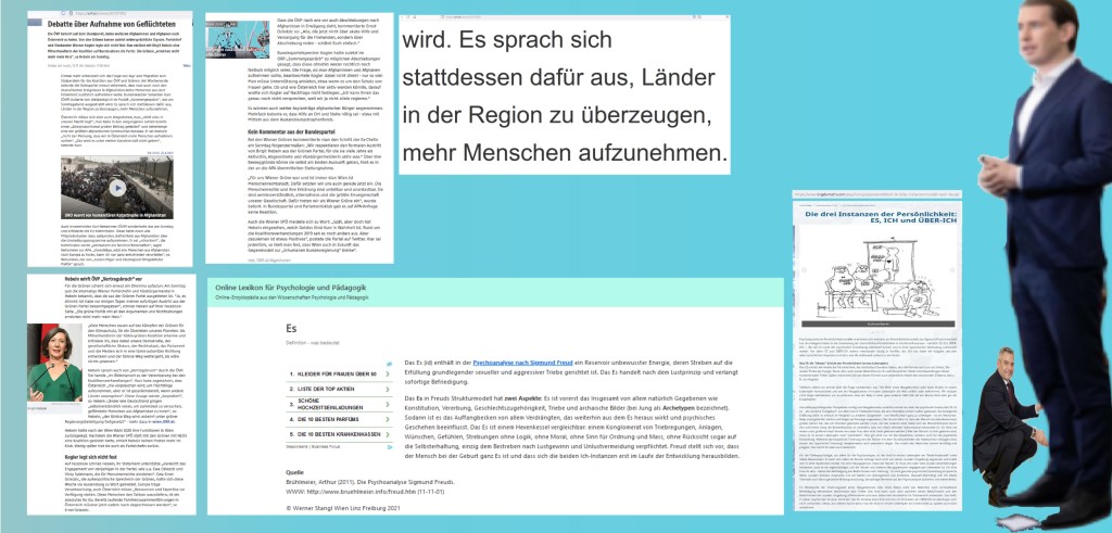 Das Es ist einem Hexenkessel vergleichbar: einem Konglomerat von Triebregungen, Anlagen, Wünschen, Gefühlen, Strebungen ohne Logik, ohne Moral, ohne Sinn für Ordnung und Mass, ohne Rücksicht sogar auf die Selbsterhaltung, einzig dem Bestreben nach Lustgewinn und Unlustvermeidung verpflichtet. (Stangl, 2021).