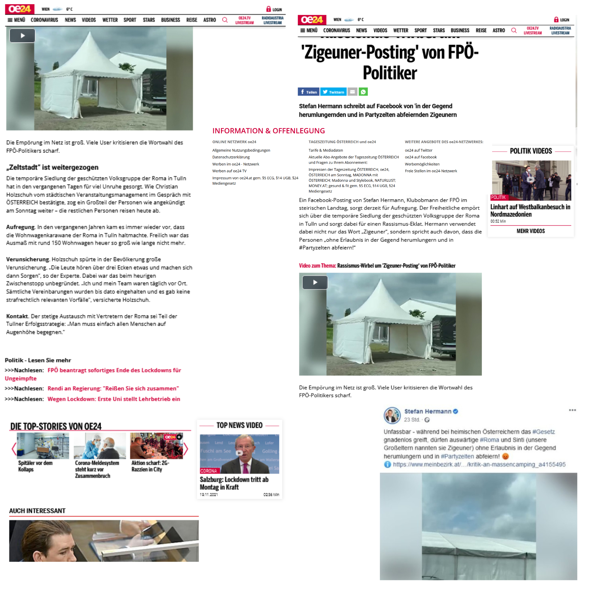 „Unfassbar – während bei heimischen Österreichern das #Gesetz gnadenlos greift, dürften auswärtige #Roma und Sinti (unsere Großeltern nannten sie Zigeuner) ohne Erlaubnis in der Gegend herumlungern und in #Partyzelten abfeiern!“