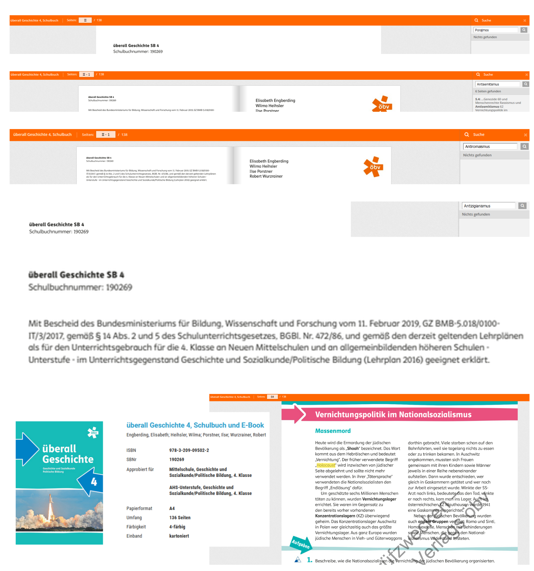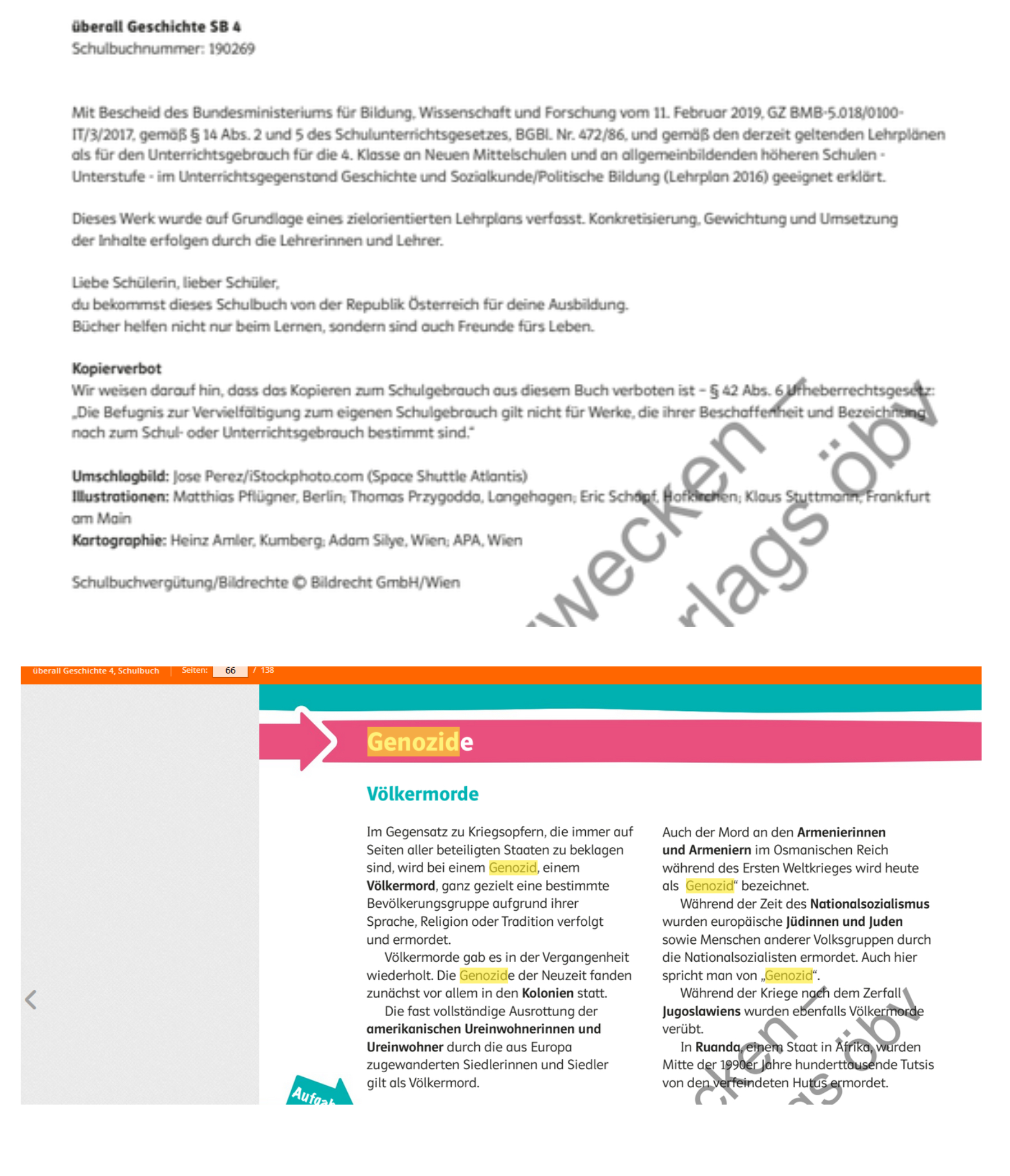 Mit diesem Bescheid wurde das Schulbuch „überall Geschichte“ als geeignet erklärt, im Februar 2019, also zur Zeit der Bundesregierung des Rücktrittskanzlerweltmeisters und des Dr. Heinz Faßmann, Bundesminister für Bildung, Wissenschaft und Forschung bis zum heutigen Tag, 23. November 2021.