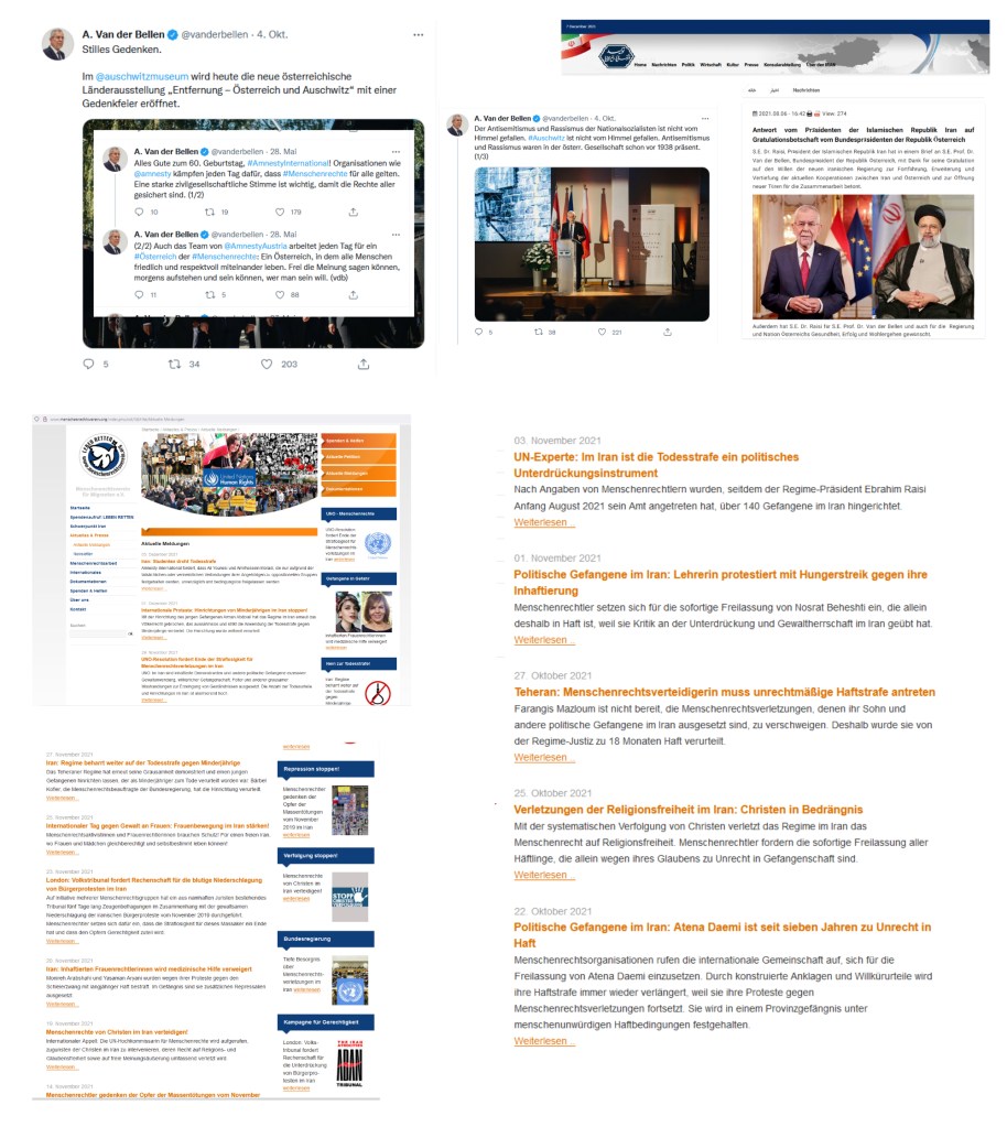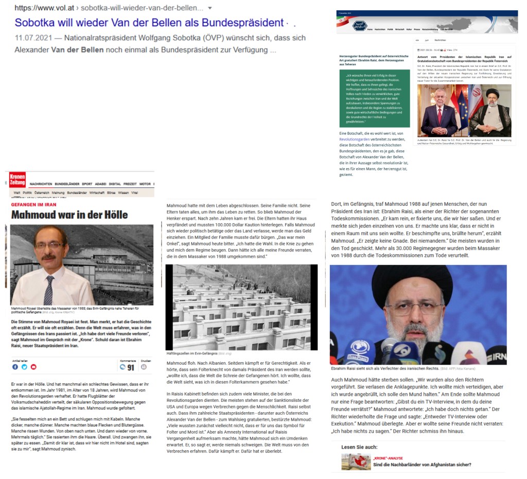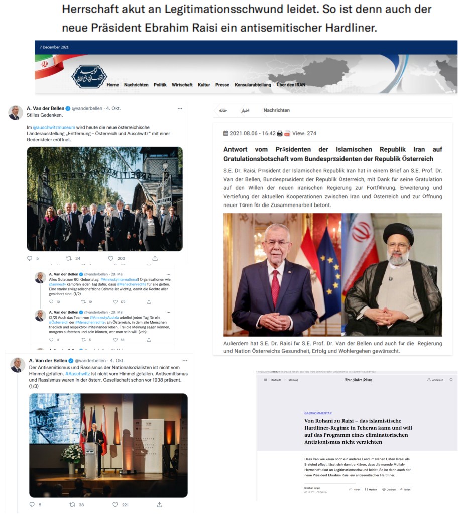 Dies sind die Wünsche des österreichischen Bundespräsidenten, der nicht nur wünschen, sondern sich auch recht herzlich bedanken kann, aber nicht zur montäglichen Angelobung an diesem 6. Dezember 2021, sondern seine Wünsche an den Präsidenten in Iran, der bis dahin bereits berühmt in der Welt als „Schlächter von Teheran“ …