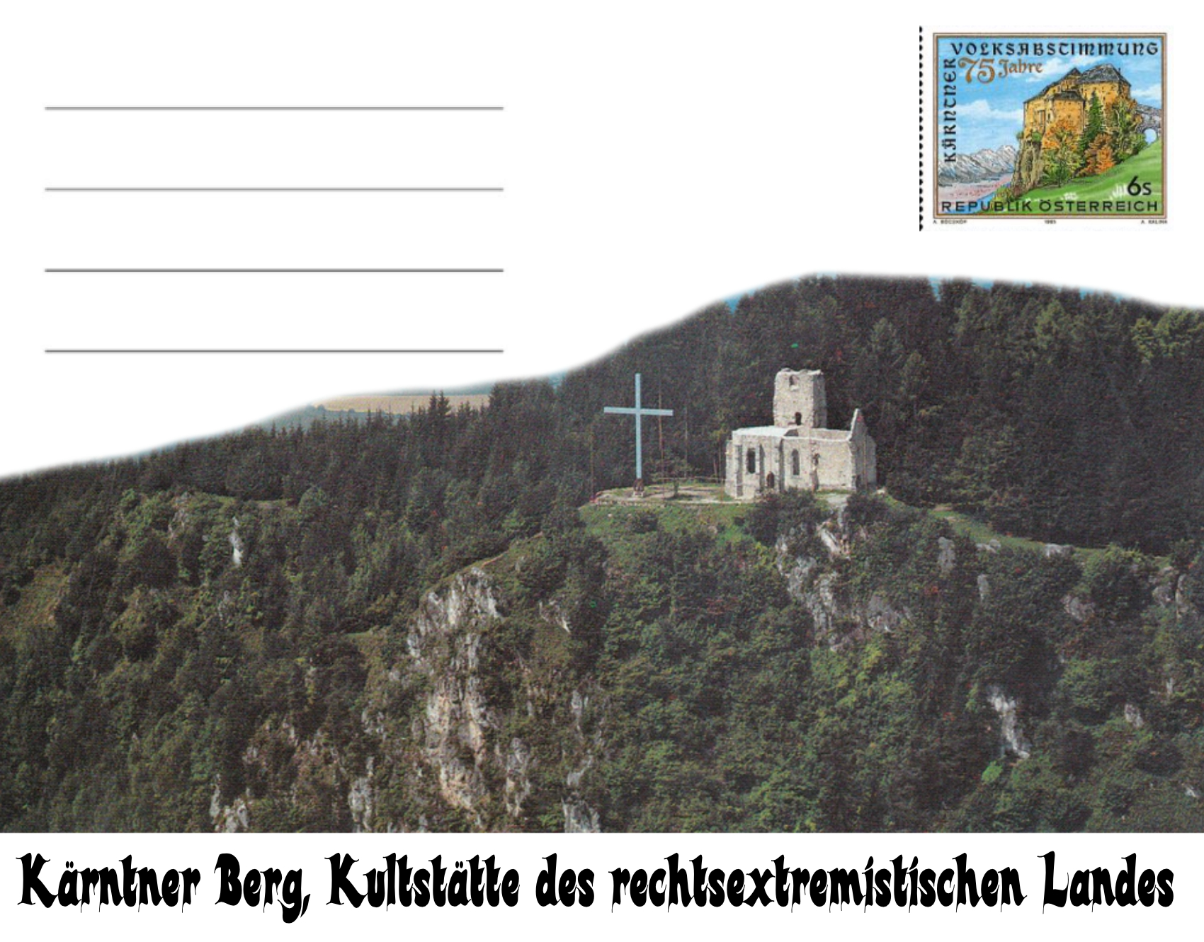 Jahrzehntelang kommen auch die Uniformierten mit Blasmusik und Geistlichen zum Treffen, daß es richtig ist zu sagen: Kärntner Berg, Kultstätte des rechtsextremistischen Landes mit Ehrenwache einer rechtsextremistischen Organisation, aus der sich einer, dem ein Heiligenschein den Weg zum Propheten oder, so modern heutzutage alle gleich welcher Gesinnung, gar zur Prophetin leuchtet, wieder recht kritisch … In solch einer recht großen Organisation gibt es menschgemäß auch, das zu verschweigen, wäre der Organisation gegenüber ungerecht, so manchen Mann, der gegen den Heiligenschein mit der Waffe …