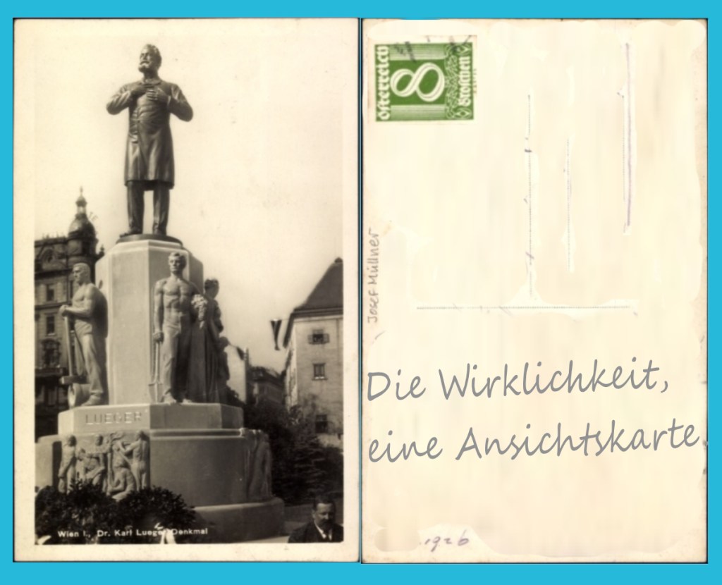 Wie leicht könnte eine bewußt fortgesetzte Propaganda für Karl Lueger und die mit ihm untrennbar verbundene Gesinnung vermutet werden, aber es ist trotz aller Tiefe nicht so abgründig, es wird – kann dies gescholten werden? – schlicht auch die Schonung des gegenwärtigen Klüngels sein, und sonst, einfach wie kurz gesagt, die Wirklichkeit: eine Ansichtskarte.