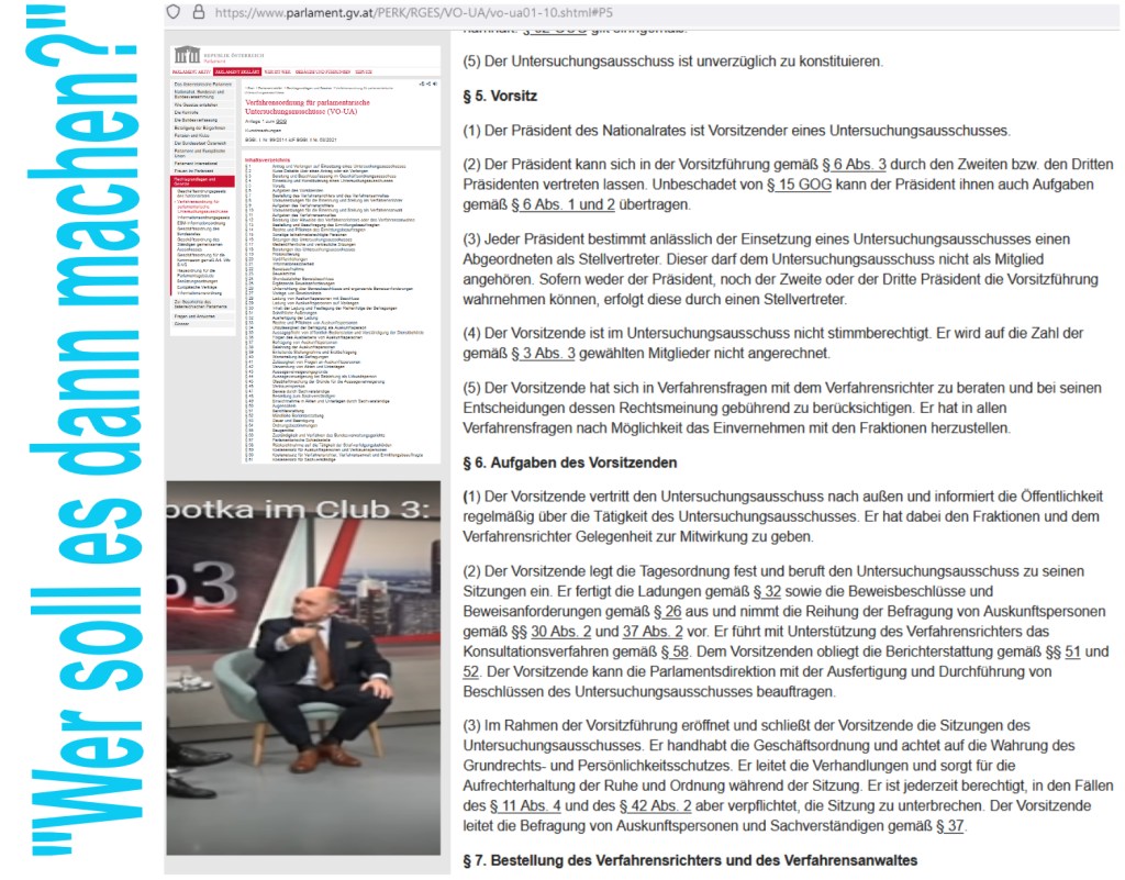 Christian Rainer hat die Verfahrensordnung des Untersuchungsausschusses angesprochen, insbesondere den Paragraphen 5. Darauf kommt der erste Präsident des gesetzgebenden Parlaments in Österreich mit dem Satz: