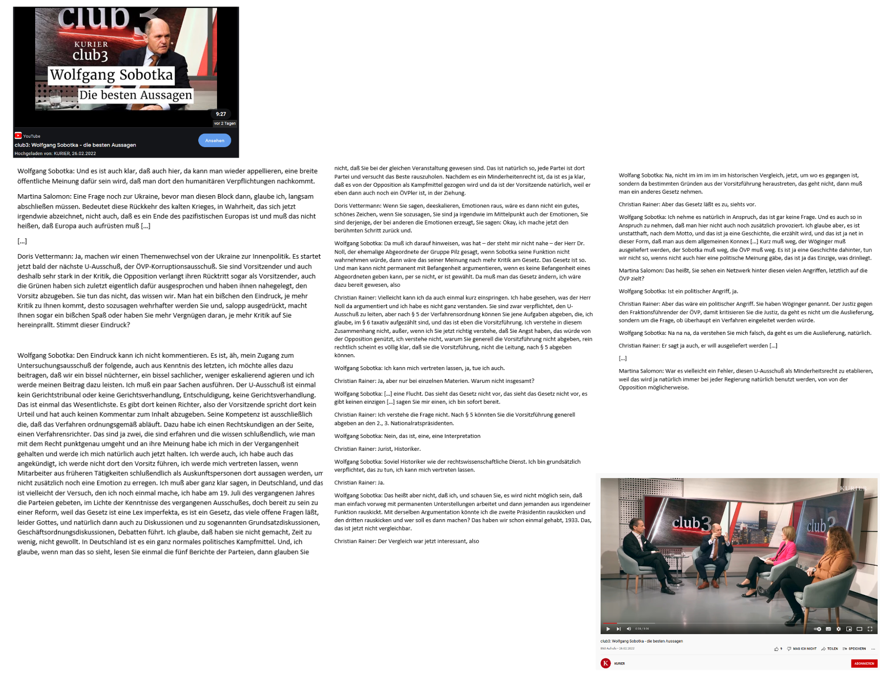 Wolfgang Sobotka: Das heißt aber nicht, daß ich, und schauen Sie, es wird nicht möglich sein, daß man einfach vorweg mit permanenten Unterstellungen arbeitet und dann jemanden aus irgendeiner Funktion rauskickt. Mit derselben Argumentation könnte ich die zweite Präsidentin rauskicken und den dritten rauskicken und wer soll es dann machen? Das haben wir schon einmal gehabt, 1933.