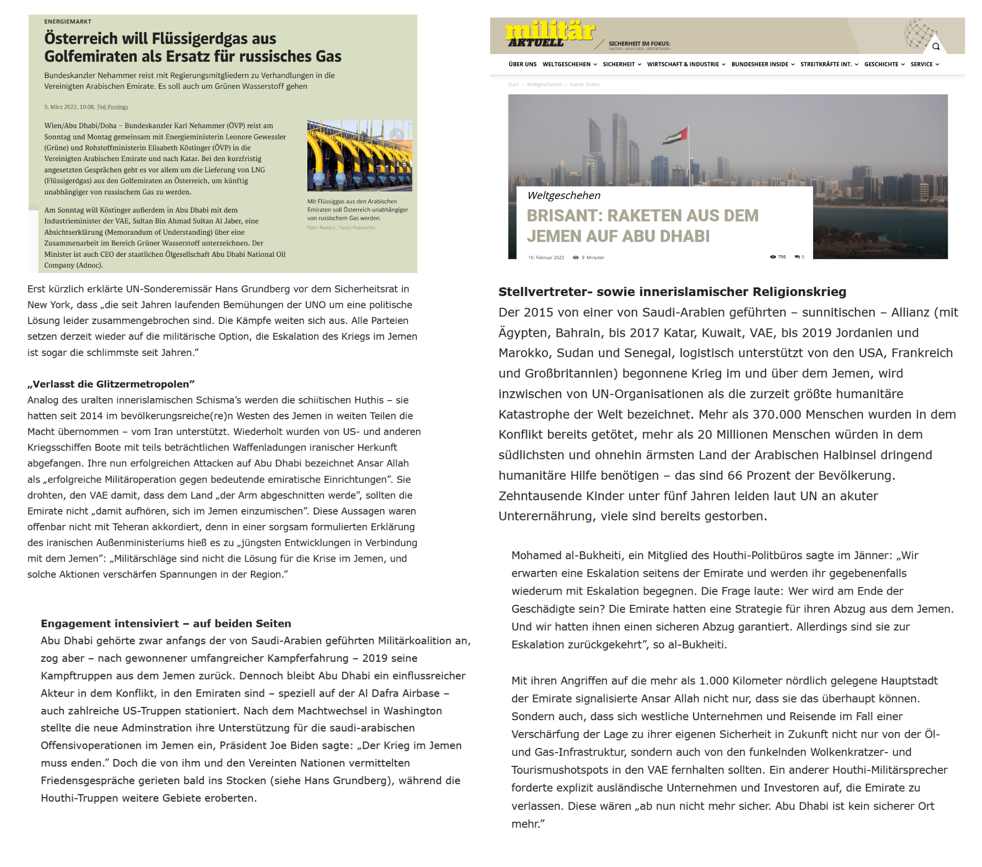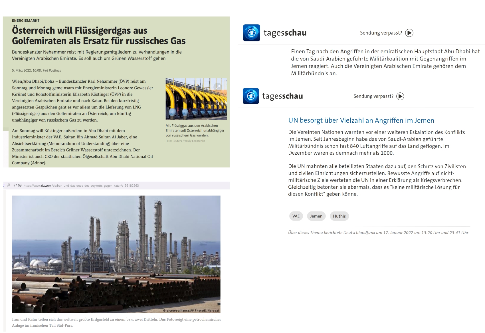 Gewessler, Köstinger, Nehammer reisen dafür nach – Katar, in die Vereinigten Arabischen Emirate,