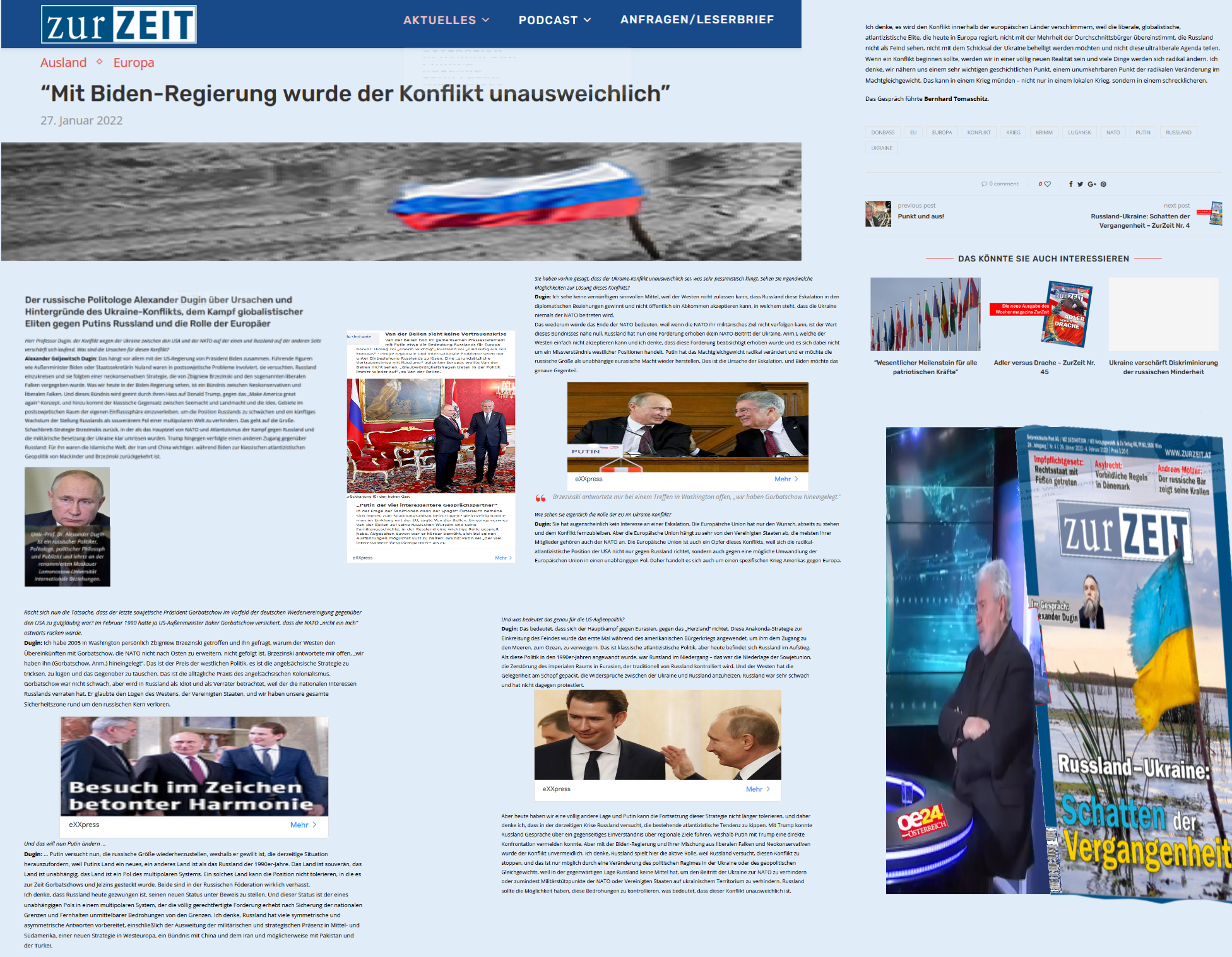 Am 27. Jänner 2022 etwa, so verständnisvoll gesinnungsneutral sind Sohn und Vater gegen Dugins Putin, in ihrem Bollwerk der Gesinnungswerte ein Interview mit Putins Dugin, der ehrenreicher