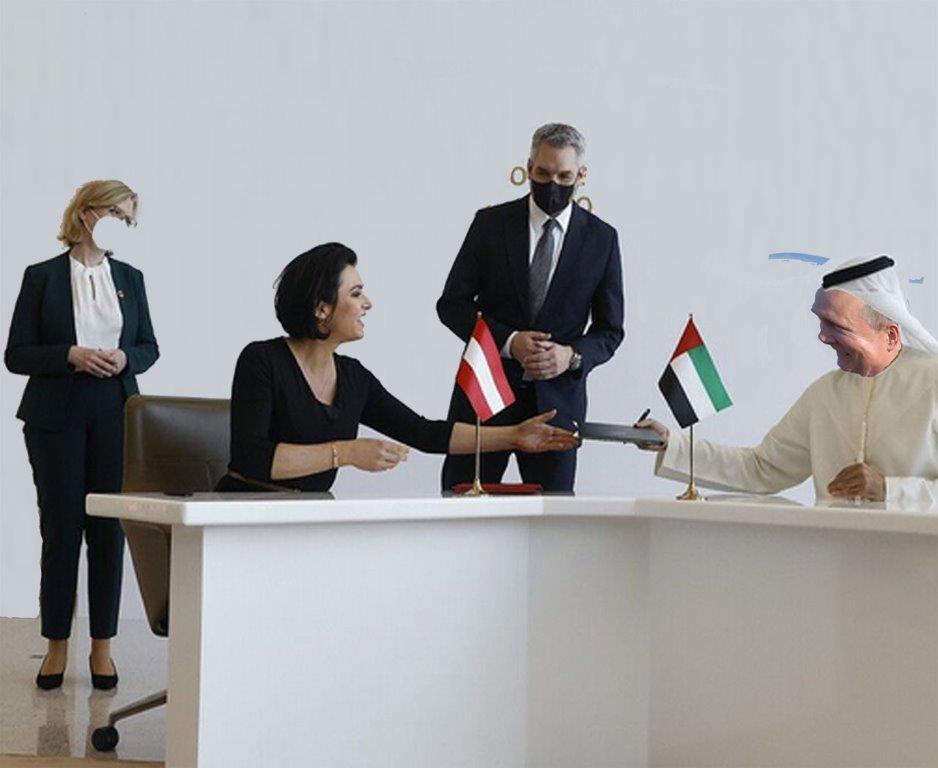 Nur im Modus Nehammer kann das Beste aus dem Besten gezogen werden. Um etwa aus dem dutinischen Schlund der Abhängigkeit – wie rasch doch nach Jahrzehnten die Abhängigkeit erkannt – herauszukommen, eiligst in den Schlund der nächsten Abhängigkeit wertefrei sich zu begeben, der ein und derselbe Schlund ist, ewig bereit und gierig darauf, alles zu verschlingen, alles zu zerstören, alles zu vernichten, was, einfach wie kurz gesagt, die Moderne ist. Und mit dabei unbedarft, grünwertevergessen die Ministerin, als wäre sie immer schon eine christschwarze Ministerin gewesen …