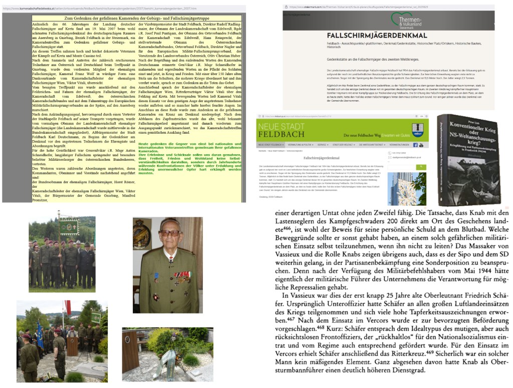 Wenn das Unternehmen des Landes Steiermark nachschreiben oder abschreiben kann, muß es für die „Neue Stadt Feldbach“ eine recht zu erfüllende Pflicht sein, ebenfalls von der „Kameradschaft vom Edelweiß“ nachzuschreiben oder abzuschreiben oder mittelbar vom steiermärkischen Landesunternehmen abzuschreiben oder nachzuschreiben, wie auf ihrer Website im April 2022 zu lesen ist.