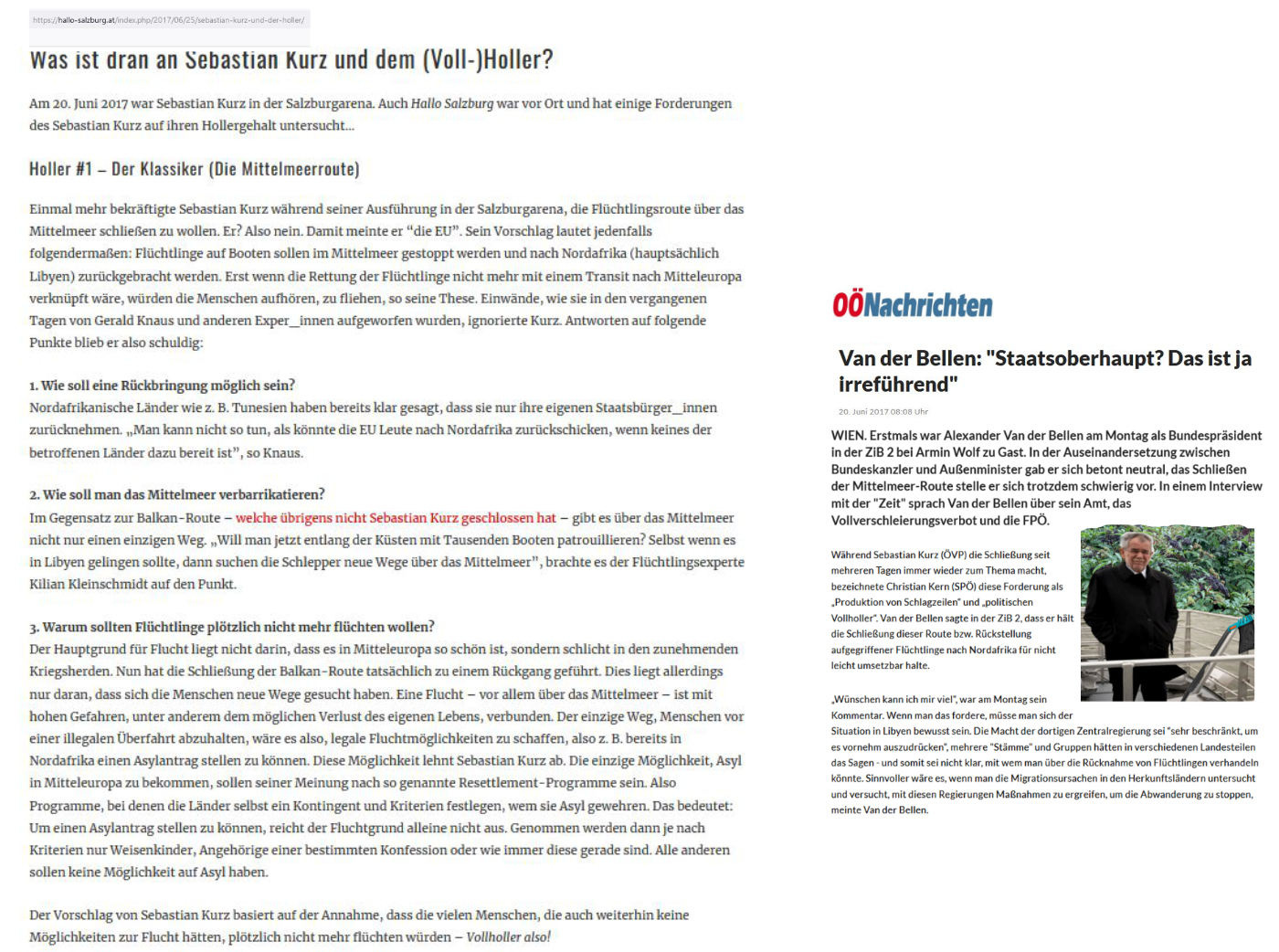 „Wünschen kann ich mir viel“, war am Montag sein Kommentar. Wenn man das fordere, müsse man sich der Situation in Libyen bewusst sein. Die Macht der dortigen Zentralregierung sei “sehr beschränkt, um es vornehm auszudrücken“, mehrere „Stämme“ und Gruppen hätten in verschiedenen Landesteilen das Sagen – und somit sei nicht klar, mit wem man über die Rücknahme von Flüchtlingen verhandeln könnte. Sinnvoller wäre es, wenn man die Migrationsursachen in den Herkunftsländern untersucht und versucht, mit diesen Regierungen Maßnahmen zu ergreifen, um die Abwanderung zu stoppen, meinte Van der Bellen.