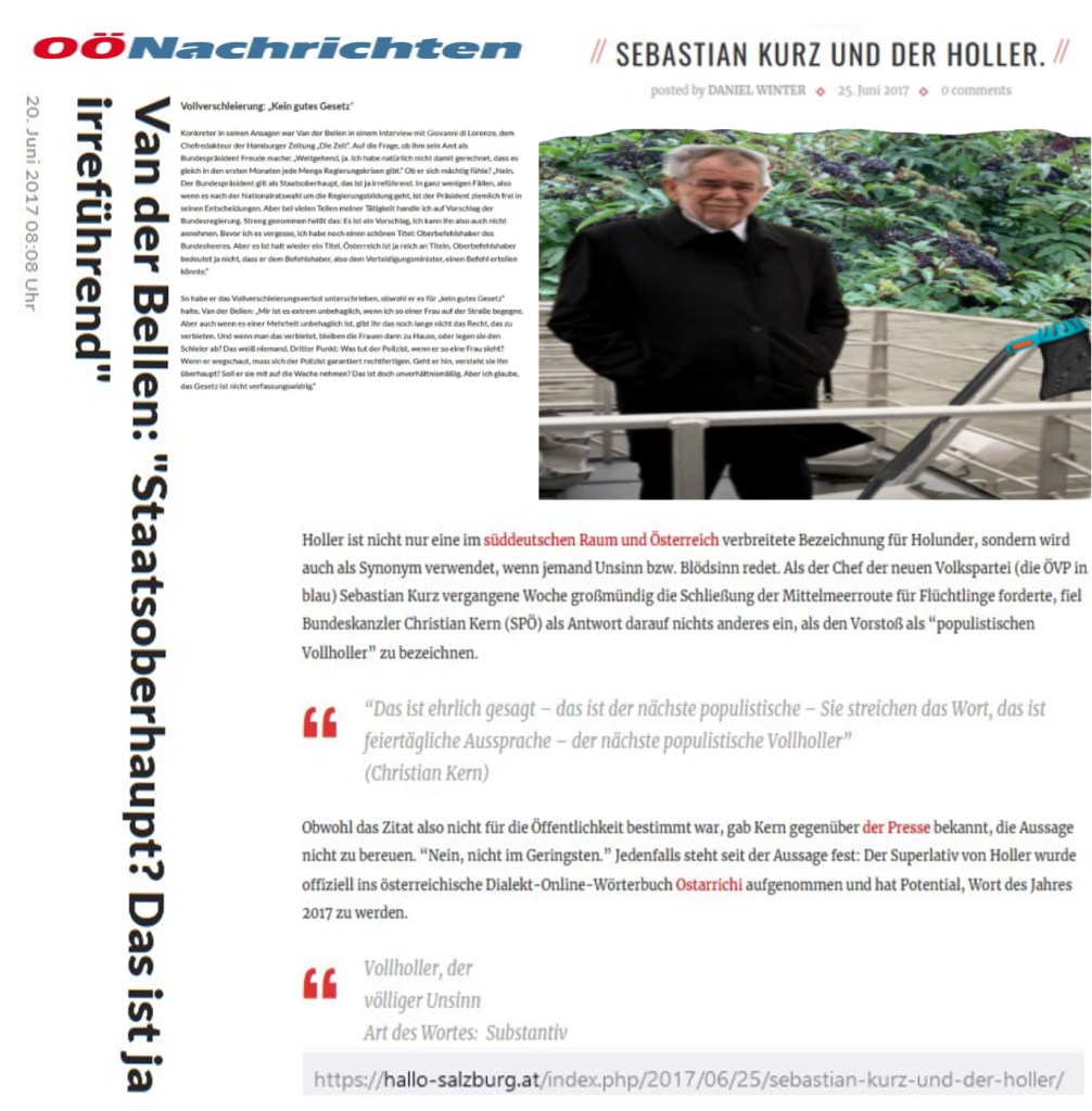 „Vollholler“, Wort des Jahres. So viel Holler in all den Jahren. In die Geschichtsbücher werden diese Jahre Österreichs eingehen als