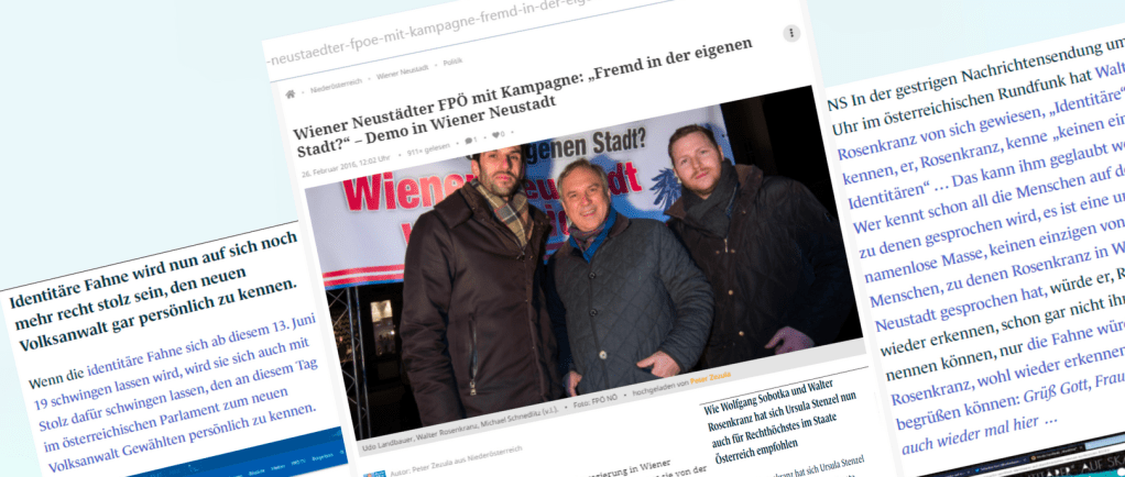 Derart beginnt Walter Rosenkranz, nun ein Kandidat für das Amt der Bundespräsidentin in Österreich, am 26. Februar 2016 seine Rede, wie diese mittels eines Videos akustisch halbwegs verstehbar auf einer Plattform eines Konzerns nach wie vor verbreitet wird; mehr ist von dieser seiner Rede nicht aufgenommen, und es genügt bereits, es will diese seine Rede gar nicht zur Gänze gehört werden —