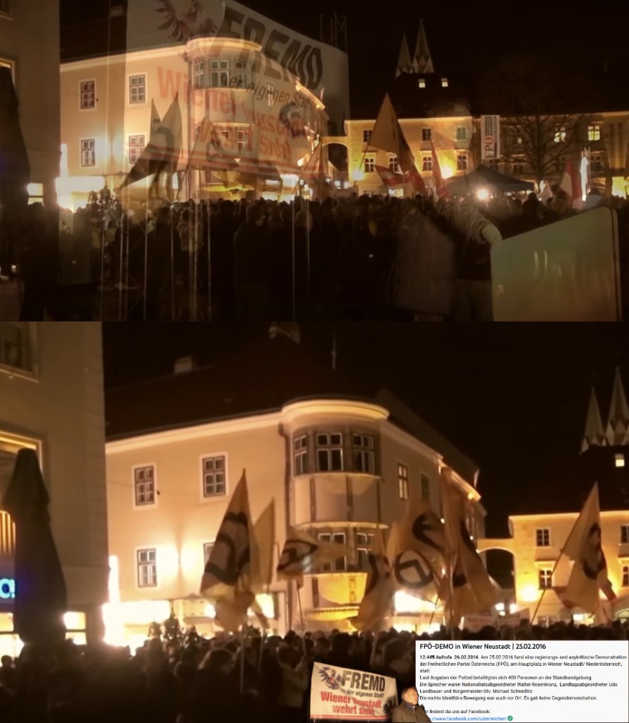 Landsleute! Liebe Patrioten! Ich darf Euch hier auch sehr herzlich begrüßen in der wunderschönen Stadt Wiener Neustadt. Wird Euch nicht wehtun. Das ist gut so. Im Kindergarten. Man muß nicht hauen, nicht raufen, nicht beißen. Aber Österreich zuerst bedeutet, hier im eigenen Land beginnen.