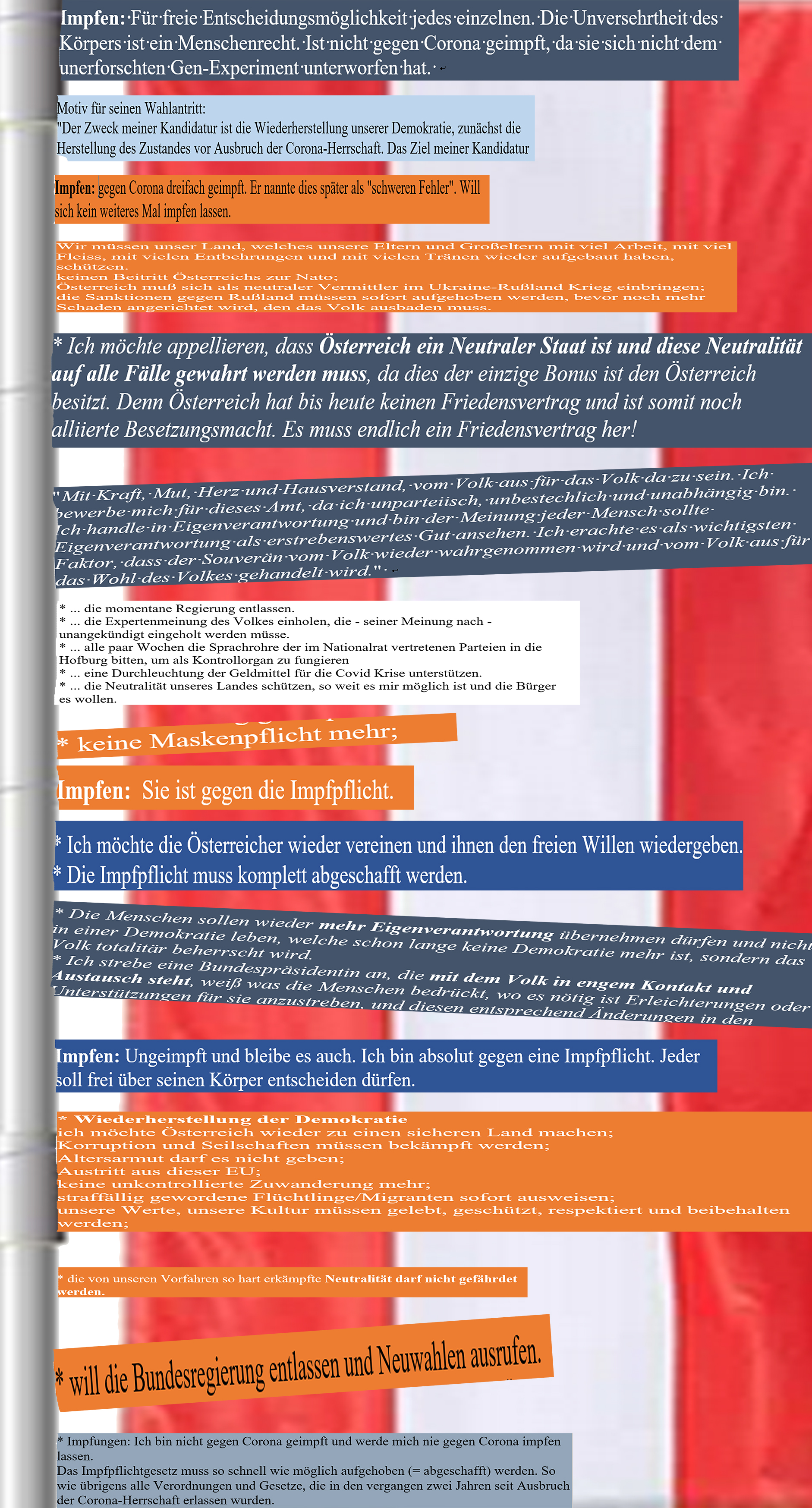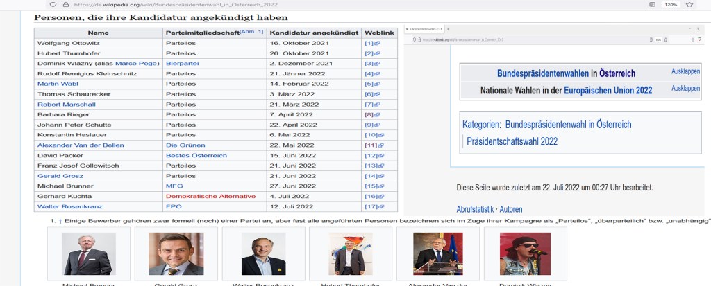 Einer der Männer aber könnte beispielhaft herausgegriffen werden, auch deshalb weil er als letzter, am 12. Juli ´22, seine Werbung zur Zulassung als Kandidat zur Wahl der Bundespräsidentin bekanntgab.