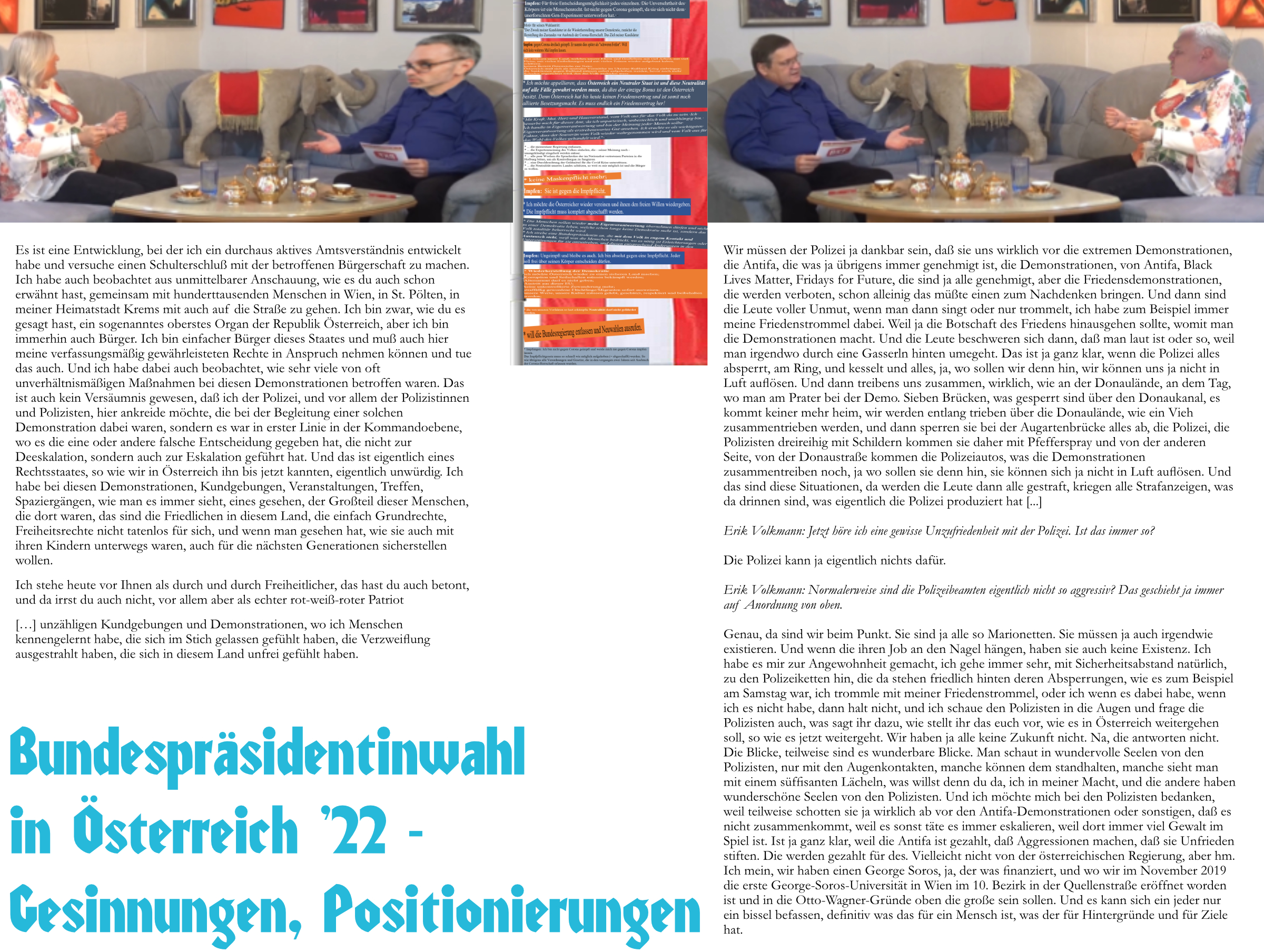Nicht nur, um bei der einen Werberin, die in einem Österreich „ohne Friedensvertrag“, in einer „alliierten Besetzungsmacht“ ihr Leben abzusitzen hat, zu bleiben, weil sie wie er eine „Corona-Demonstrantin“, sondern auch sie wie er „berechtigte Kritik“ an George Soros … und worauf diese fußt, das ist nicht ein weiteres Mal auszuführen —