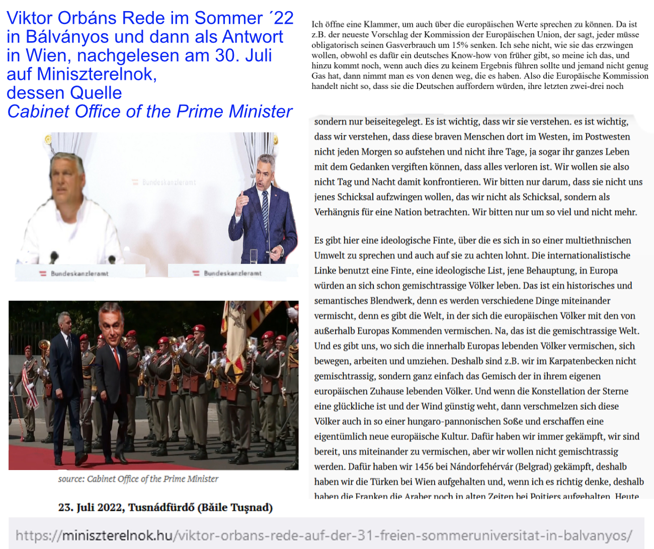 So ausführlich spricht der vierfaltige Mund von Viktor Orbán nicht zu Karl Nehammer. Er muß in Wien das alles nicht wiederholen, zumal seine gesamte „Rassenrede“ auf der offiziellen ungarischen Website nachgelesen werden kann: „Cabinet Office of the Prime Minister“.
