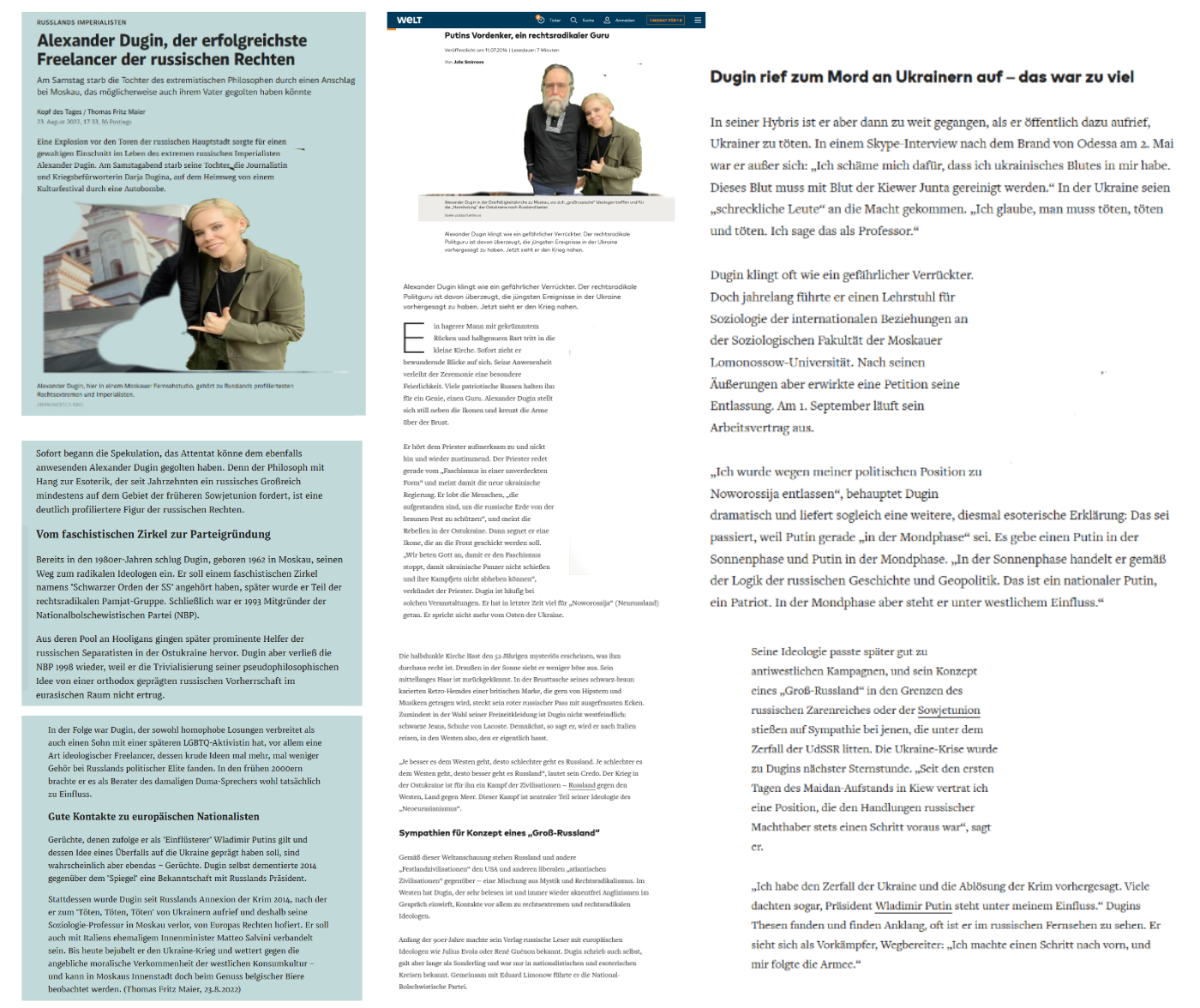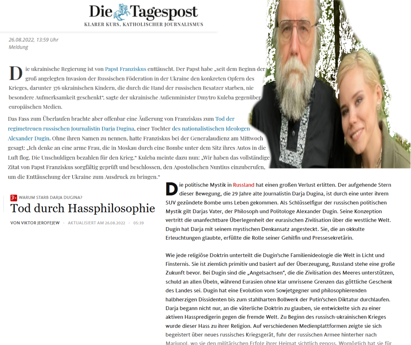 Seine Aussagen nach der Ermordung seiner Tochter, Darja Alexandrowna Dugina, lassen nicht erkennen, er hätte, nun als unmittelbar betroffener Vater seiner Mordgelüste, daraus gelernt.
