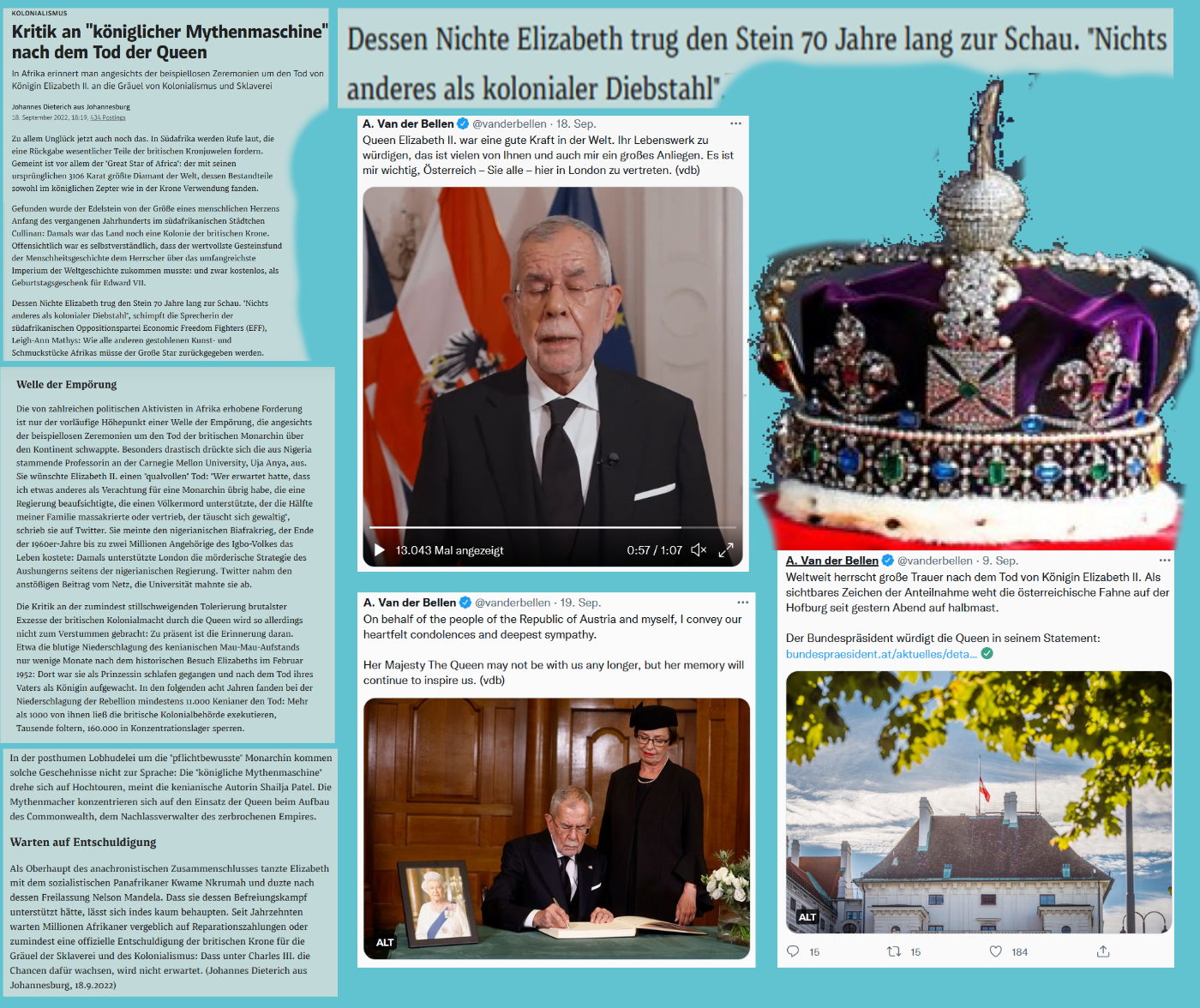 Es ist nicht so, daß in Kaunertal die Welt ewig ausgeschlossen ist, Kaunertal immer nur für sich ist, abgeschlossen von der Welt, manchmal wird doch beinahe vor die Tür getreten, dann doch bloß das Fenster einen Spalt breit geöffnet und hinausgeblinzelt, selten, aber doch, und das vor allem dann, wenn ein Mensch stirbt, draußen in der Welt, dann wird die Welt hereingeholt nach Kaunertal, um einer Verstorbenen, die siebzig Jahre „koloniales Diebsgut“ auf dem Kopf —