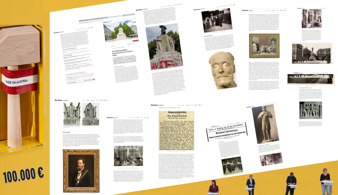 Und diesen Manne, den Matador des Denkmals, die Schlüsselfigur, deren Preis so vielen, vielen zu Bedeutung erhob, nicht einmal zu erwähnen, wenn es gilt, das Denkmal geschichtlich darzustellen, wie es etwa Andreas Nierhaus auf Wien Museum – das mit des Matadors Künstlers Wehrmann vor seinem Tore selbst so um Geschichte bemüht, auch auf unergründlichen Wegen – unternimmt, diesem dem Vergessen Anheimgegebenen muß erinnernde Gerechtigkeit widerfahren, ihn selbst sprechen zu lassen, ist nur billig und recht:
