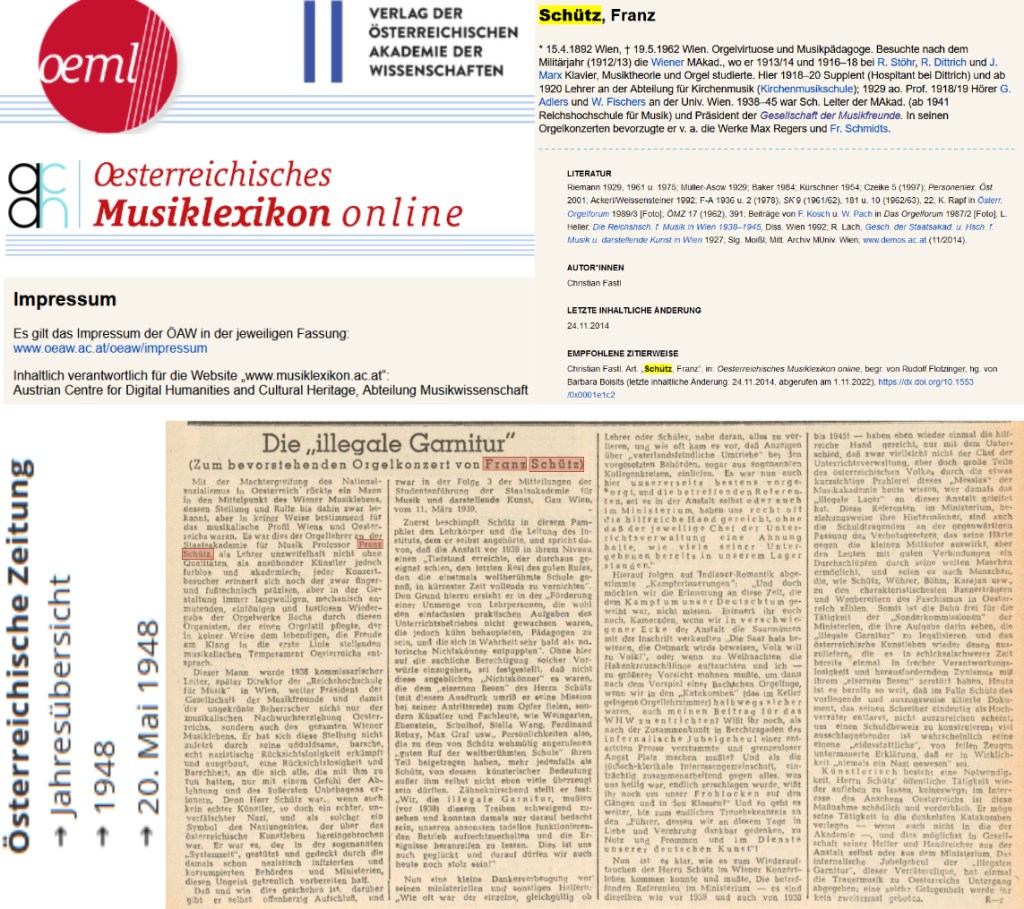 Christian Fastl ist es auch, der den Eintrag zu Franz Schütz schrieb, zu dem „Orgelvirtuosen und Musikpädagogen“, wie er von Christian Fastl kenntnisreich und wohl aus eigenem Hörerlebnis klassifiziert wird.