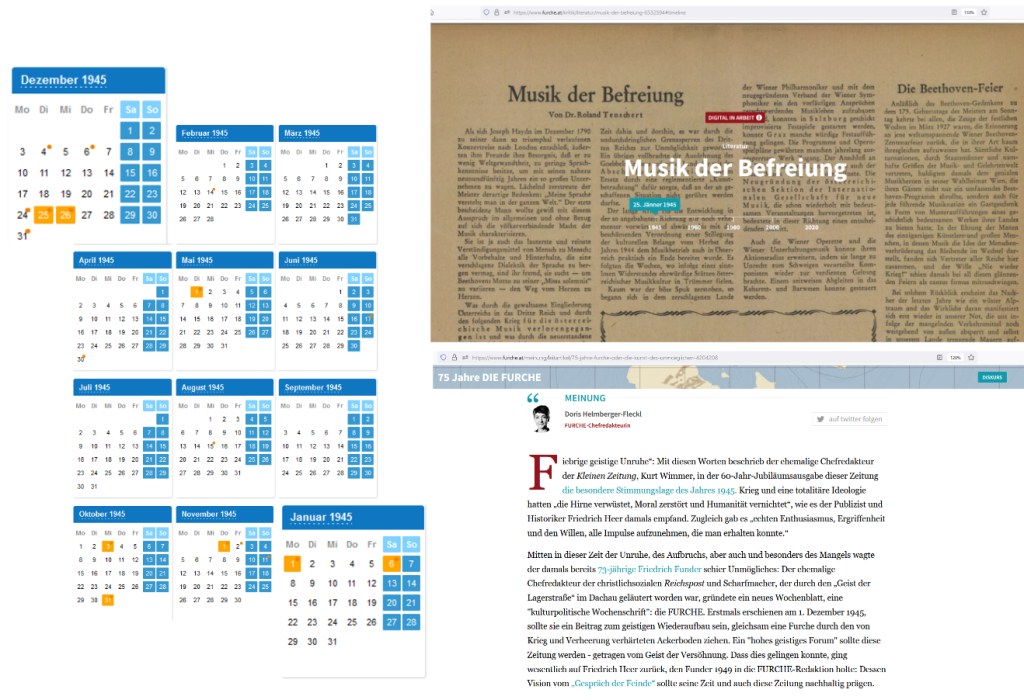 Bei einer katholischen Zeitung darf durchaus von einem Wunder gesprochen werden. 1945 begann also mit dem Monat Dezember und 1945 endete mit dem Monat Januar. Wie sonst auch hätte „Die Furche“ die „Musik der Befreiung“ von Roland Tenschert veröffentlichen können, wäre der 1. Dezember 1945 nicht vor dem 25. Januar 1945 —