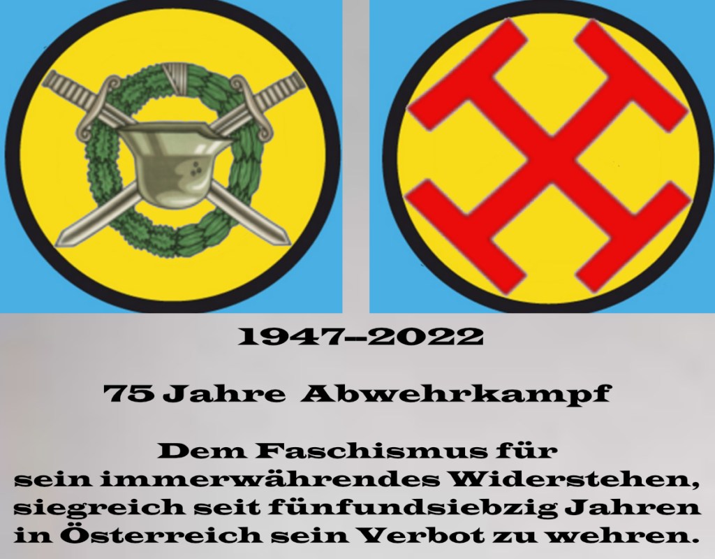 Und sollten jene, die heutzutage ihre Gesinnung aus in Winterhilfen gesammelten faschistischen Altstoffen schneidern, eines Tages leid sein, immer wieder neue Symbole zu schustern, auch wenn es ihnen eine rechte Freud‘ sein muß, gerade Regierungsparteien mit ihren Verboten von Symbolen nicht nachkommen zu sehen, ihnen immer hinterherhinken zu sehen, werden sie vielleicht auf ein Symbol zurückgreifen, von dem sie wissen, dieses ist einem Verbot immerwährend entzogen, in Österreich.