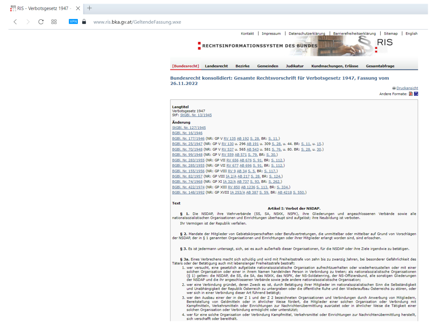 Das österreichische „Verbotsgesetz“ ist wieder einmal im Gerede. Diesmal aber nicht, weil es Einschlägige wieder einmal abgeschafft haben möchten, sondern, weil es reformiert werden soll.