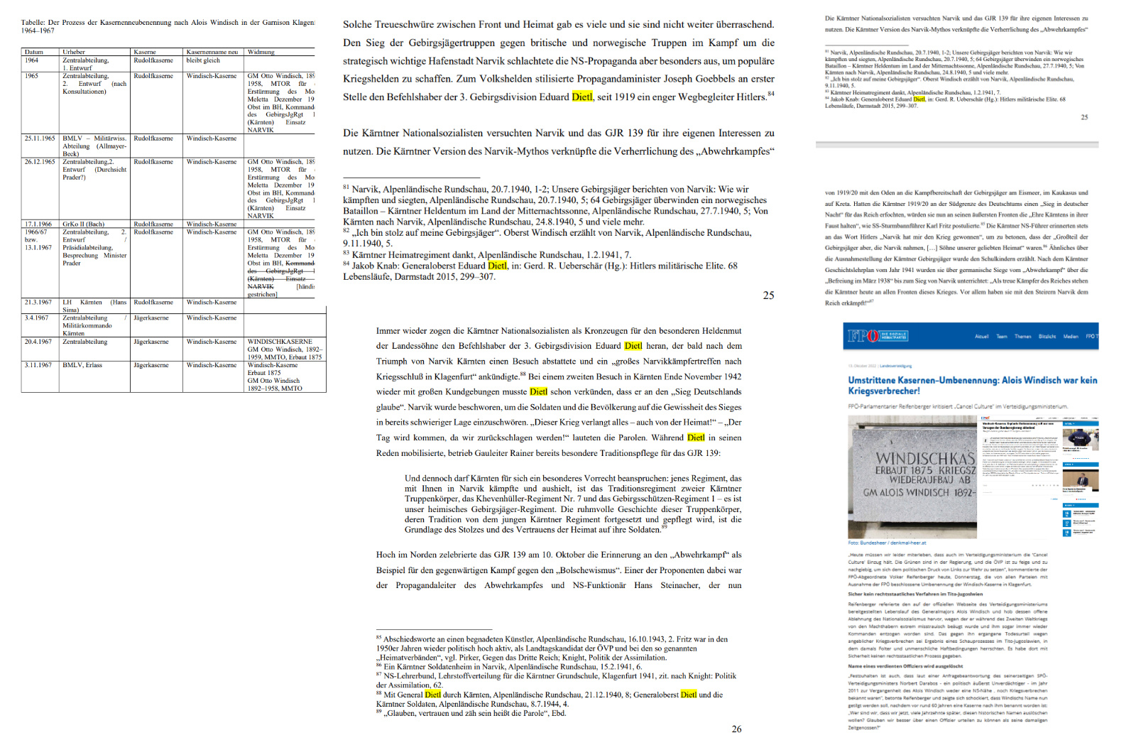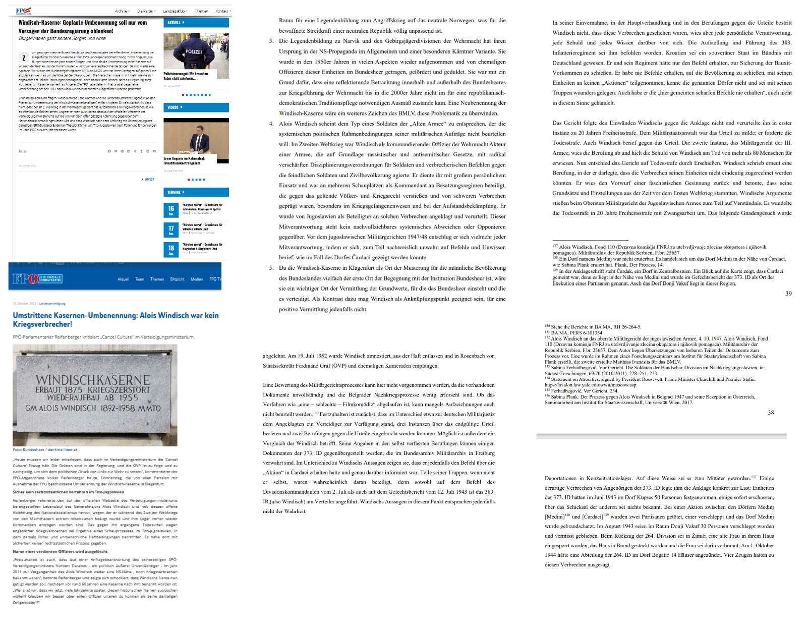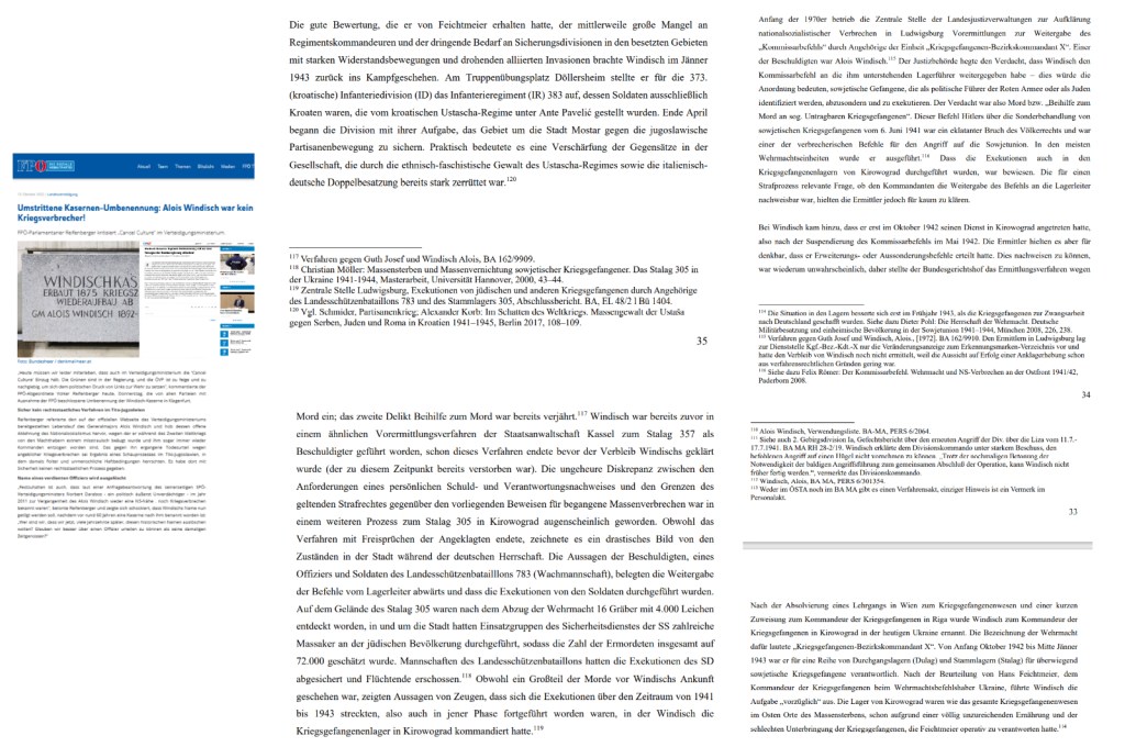 und zeigte sich schockiert, dass Windischs Name nun getilgt werden soll, nachdem vor rund 60 Jahren eine Kaserne nach ihm benannt worden ist: „Wer sind wir, dass wir jetzt, viele Jahrzehnte später, diesen historischen Namen auslöschen wollen? Glauben wir besser über einen Offizier urteilen zu können als seine damaligen Zeitgenossen?“