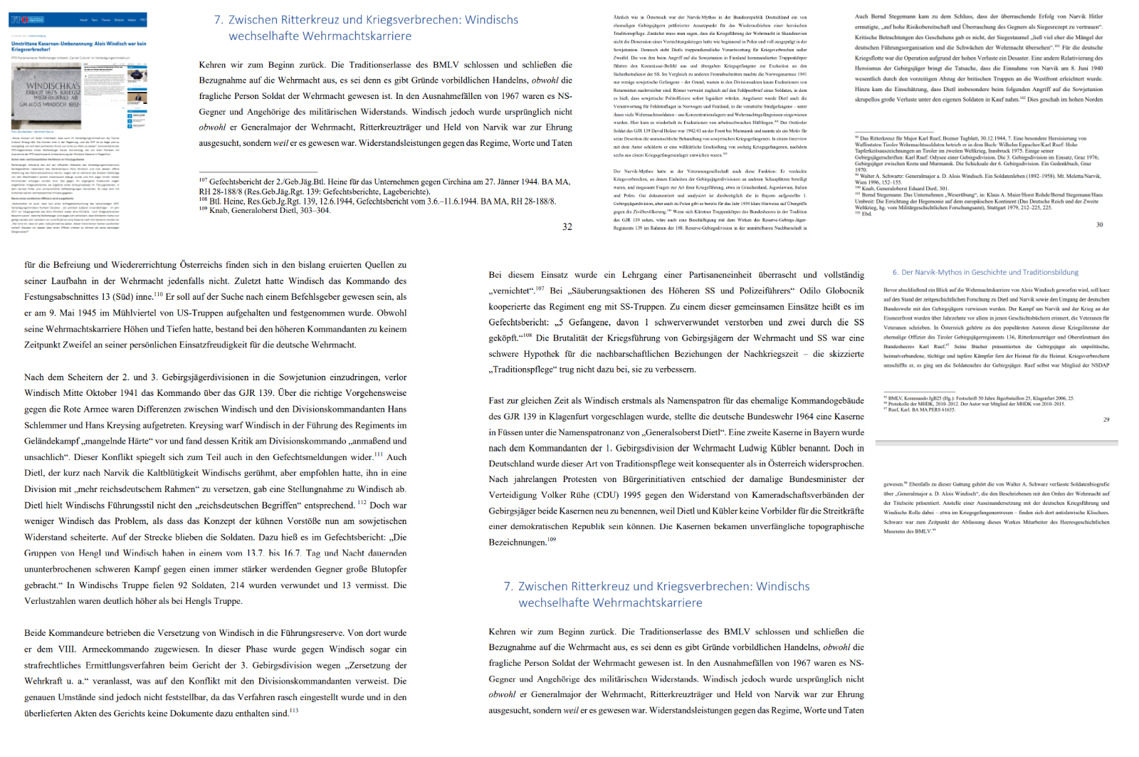 Wie die Rechtfertigung, Eduard Dietl in einem Kapitel auftreten zu lassen, einzig in der österreichischen Gegenwart begründet ist, ist die Rechtfertigung, Alois Windisch in einem Kapitel auftreten zu lassen, einzig in der Gegenwart Österreichs begründet, und diese führt mit Alois Windisch zu einer österreichischen Parlamentspartei mit ihrem zurzeitigen Führer, der formal Obmann genannt wird, der sich eben, das kann so gesagt werden, paramilitärisch plakatieren läßt, als wäre er ein „Festungskommandant“
