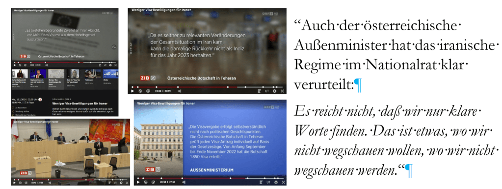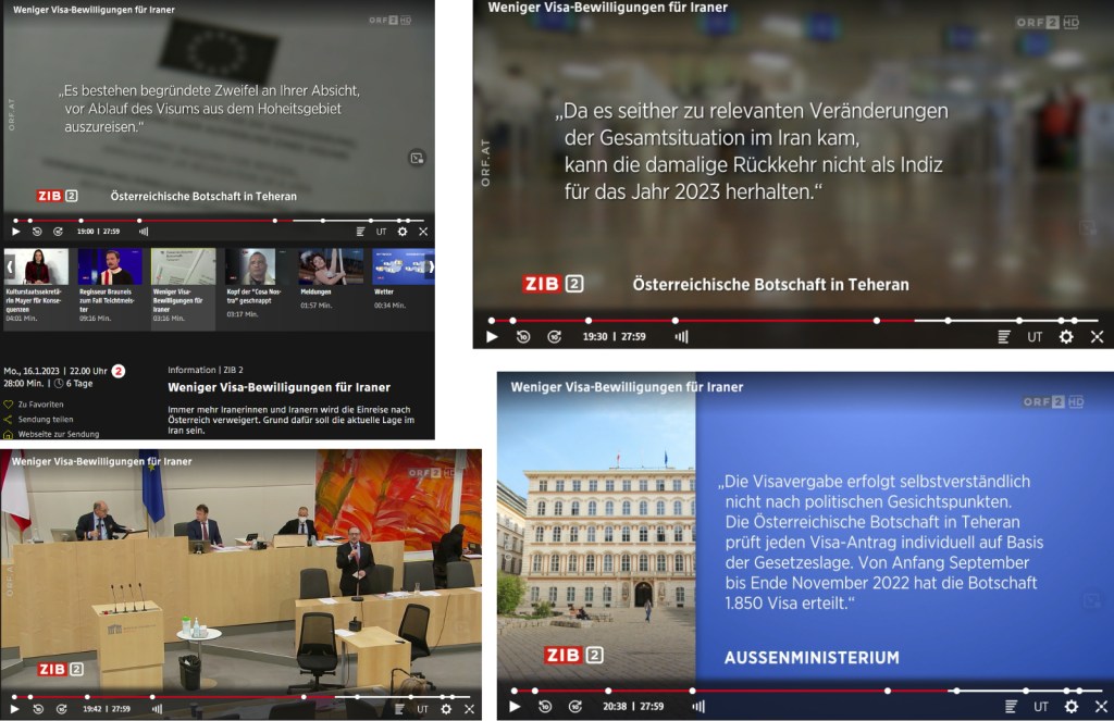 Es wird auch aus der Begründung der Visa-Ablehnung durch die österreichische Botschaft in Teheran zitiert: