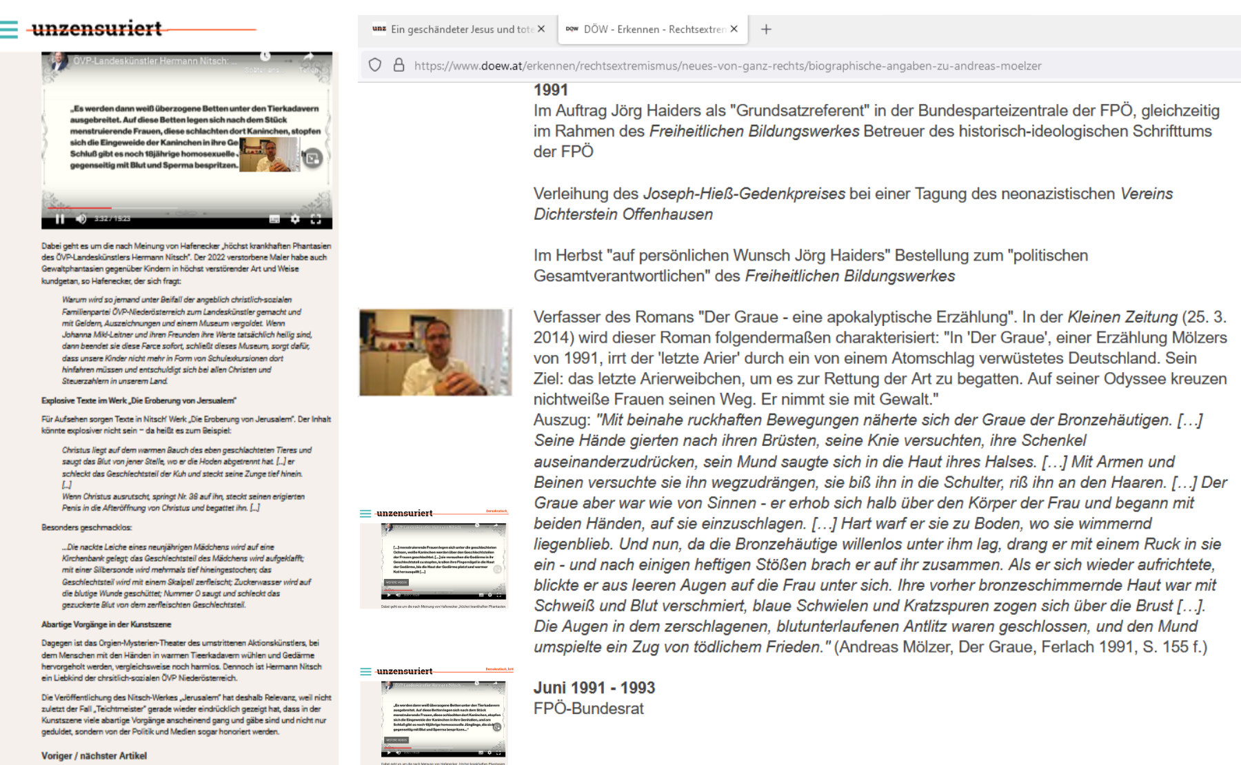 Christian Hafenecker betrachtet aber nicht Andreas Mölzer, sondern Hermann Nitsch, von dem jedoch nicht das diesem Kapitel vorangestellte Zitat ist, sondern von Andreas Mölzer.