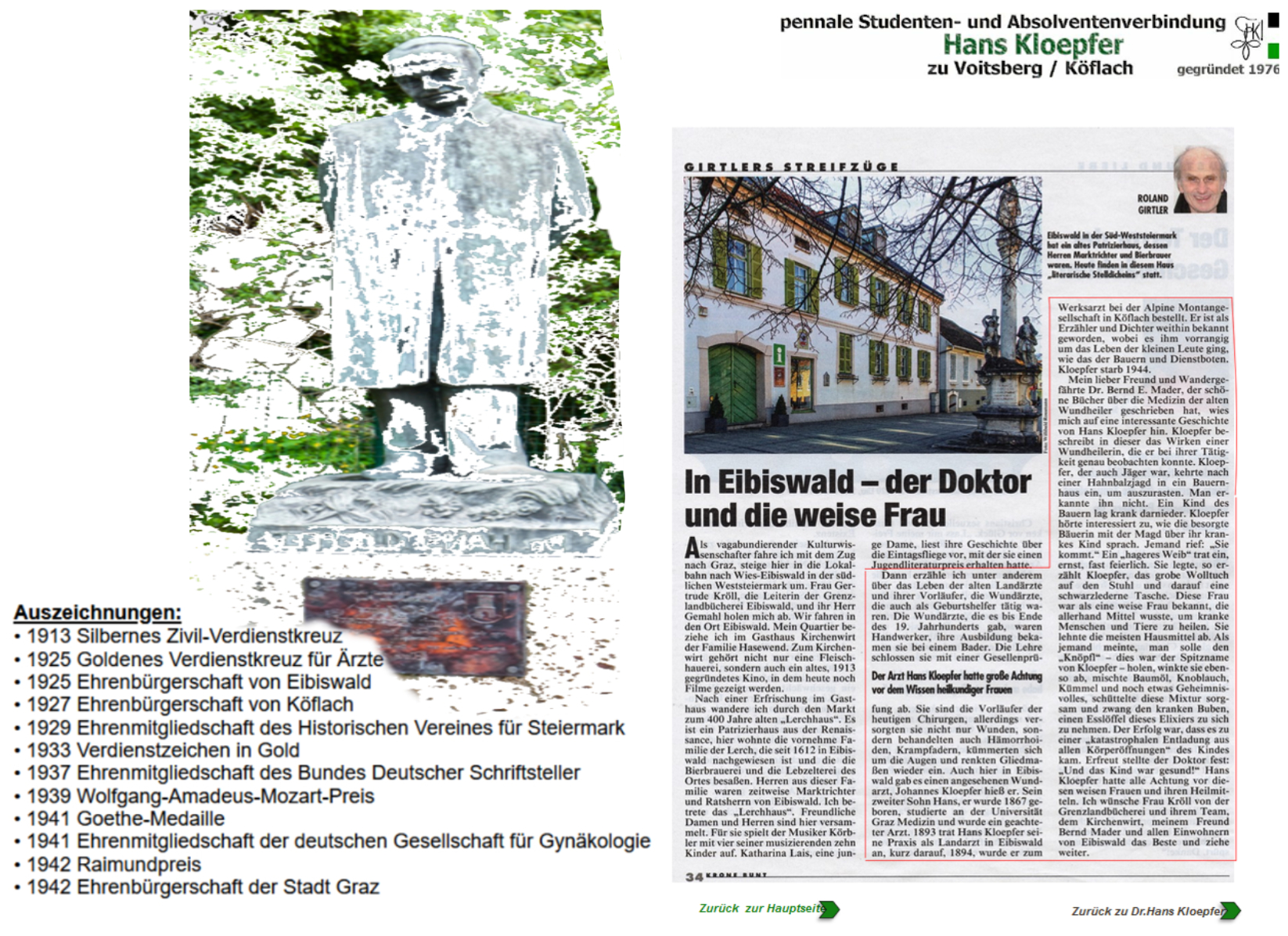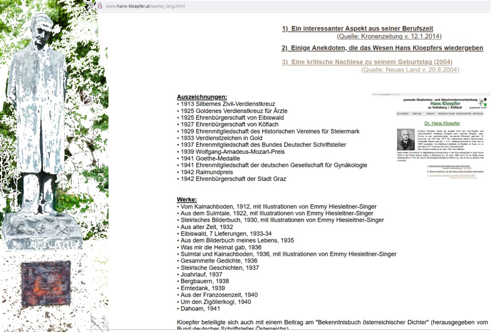 ist am 20. Februar 2023 auf der Website der „pennalen Studenten- und Absolventenverbindung Hans Kloepfer zu Voitsberg/Köflach“ zu lesen, nicht zu lesen ist auf ihrer Website der zweite Teil der Überschrift: „ein wesentlicher ideologischer Wegbereiter des Nationalsozialismus in der Weststeiermark“ …