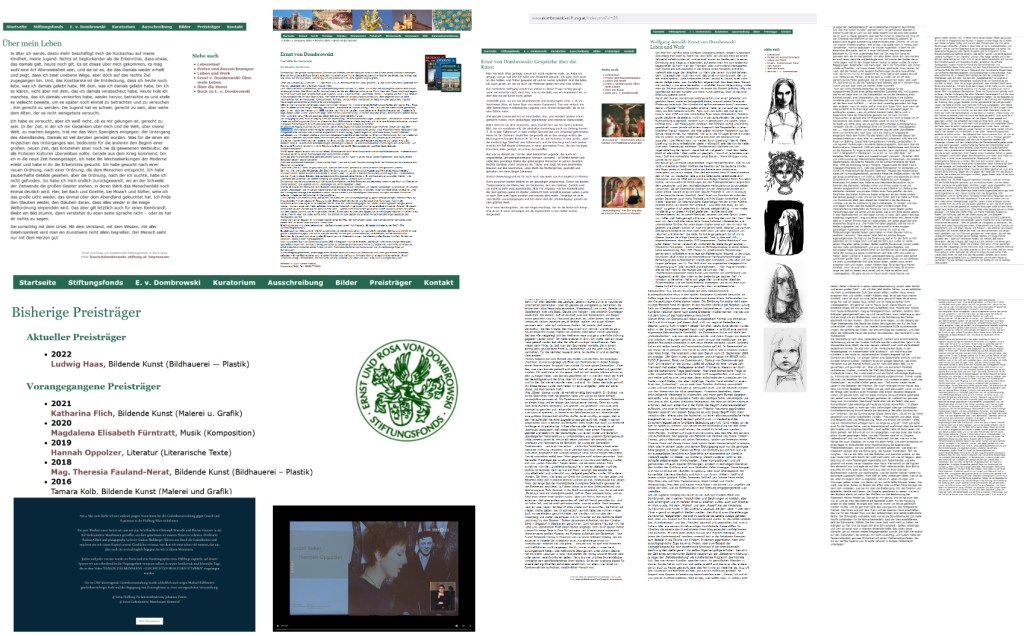 Und auf der Website des Stiftungsfonds mit seinem Büro und seiner Telefonnummer des von Kinnlädchen geschätzten Verlages ist zu lesen, am 11. April ’23, was Dombrowski selbst über sein Leben sagt:
