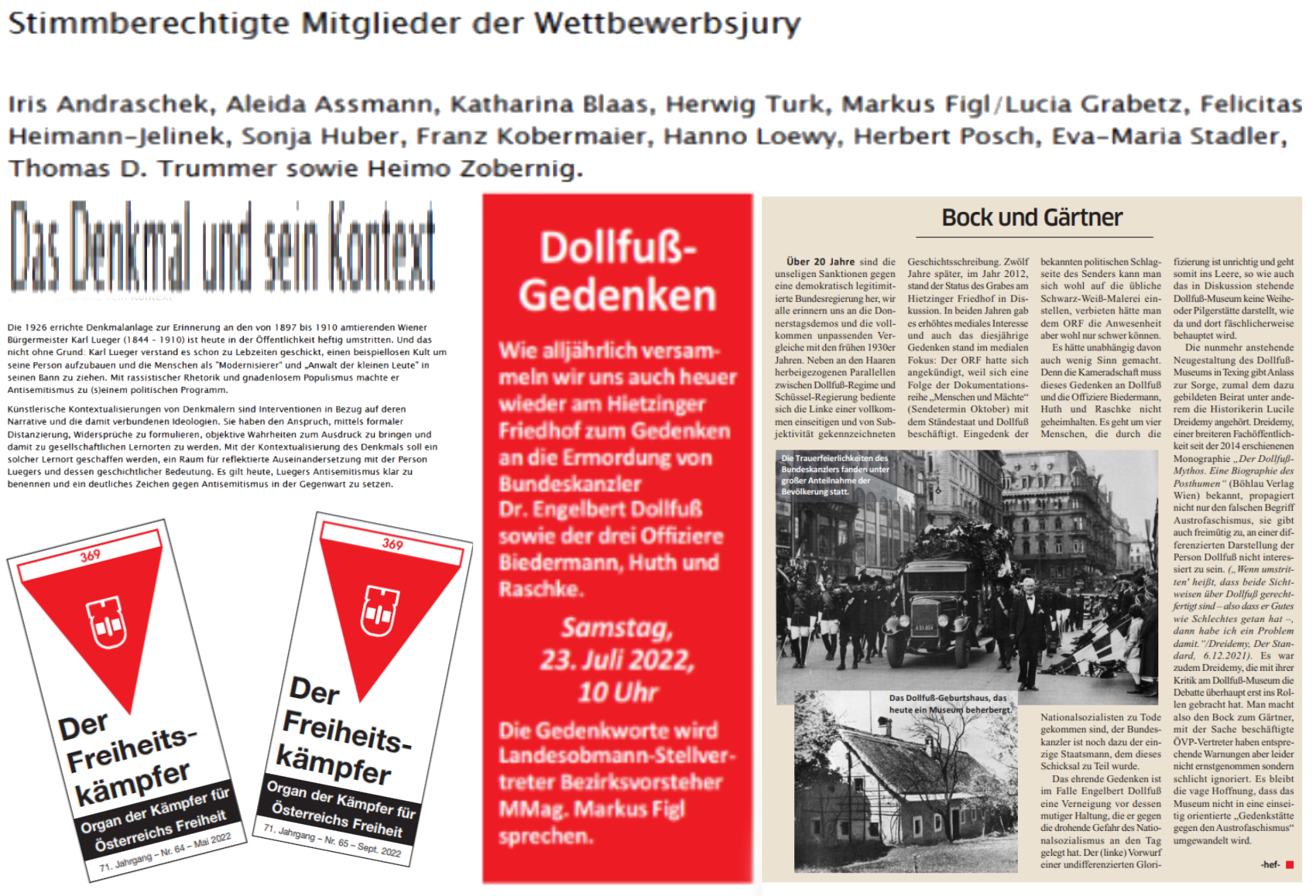 wie der stadtamtlichen Verkündigung zu entnehmen ist, die Tradition der Verschwiegenheit überzeugte, recht besonders wohl den „Lueger-verlangt-eine-differenzierte-Betrachtung“-Dollfußgedenkredner,
