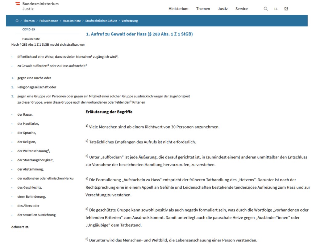 … wie ungerecht das war, muß nun erkannt und eingestanden werden, beim Lesen am 19. Juni 2023 der Erklärung des Bundesministeriums für Justiz in Österreich des Paragraphen 283 StGB, dessen Änderung mit 1. Jänner 2021 in Kraft gesetzt wurde, wonach „Rasse“ nach dieser ministerialen Erklärung und Sicht „Ausländer*innen/Ungläubige“ —