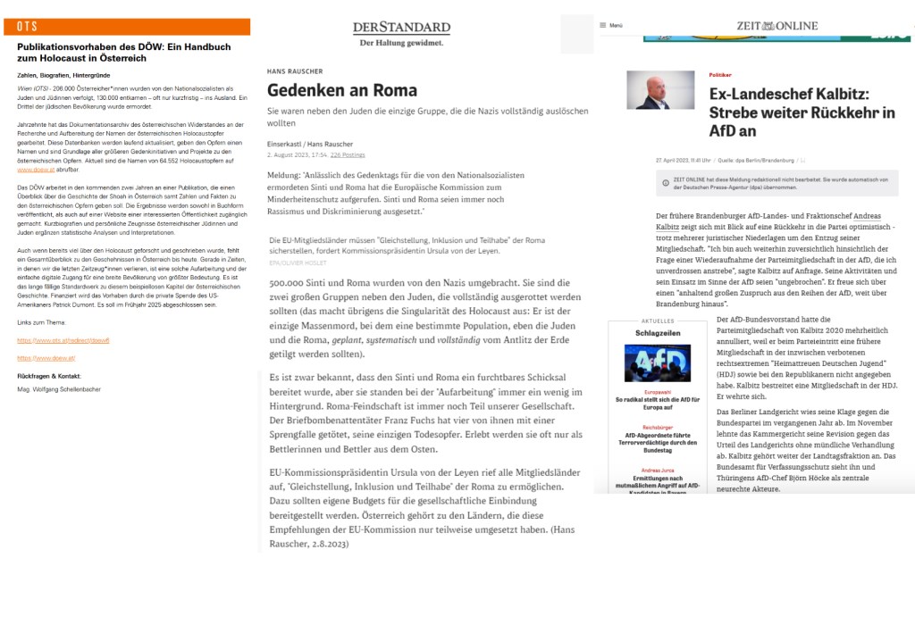 Was es auch bald geben wird, es soll im Frühjahr 2025 abgeschlossen sein, so die Ankündigung des Dokumentationsarchivs des Österreichischen Widerstands am 17. August 2023: ein „Handbuch zum Holocaust in Österreich“: