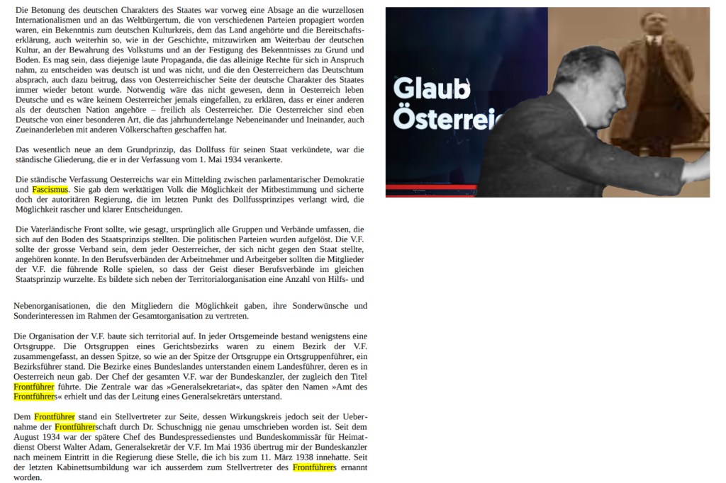 doch der autoritären Regierung, die im letzten Punkt des Dollfussprinzipes verlangt wird, die