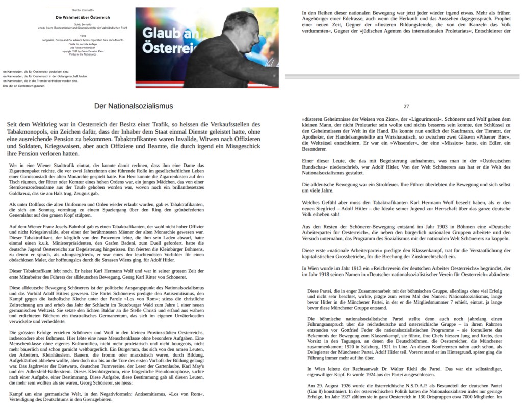 Es ist eine Passage, die in die Gegenwart Zernattos, als er seine „Wahrheit über Österreich“ schreibt, führt, und von dieser ist es eine Passage in die Gegenwart, in die